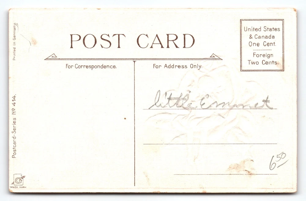 Signed by artist Frances Brundage. Unposted. Antique original vintage post card. Clean with corner dings, and age wear. Stock #VAL199. Additional postcards are in our store. All post cards are old originals and may or may not have writing on back. Bundle and save by using cart and making single payment.
