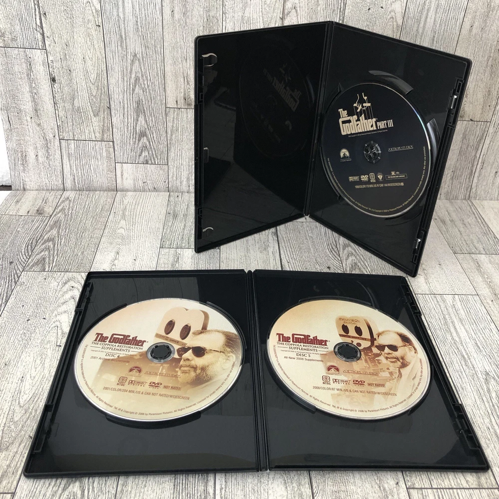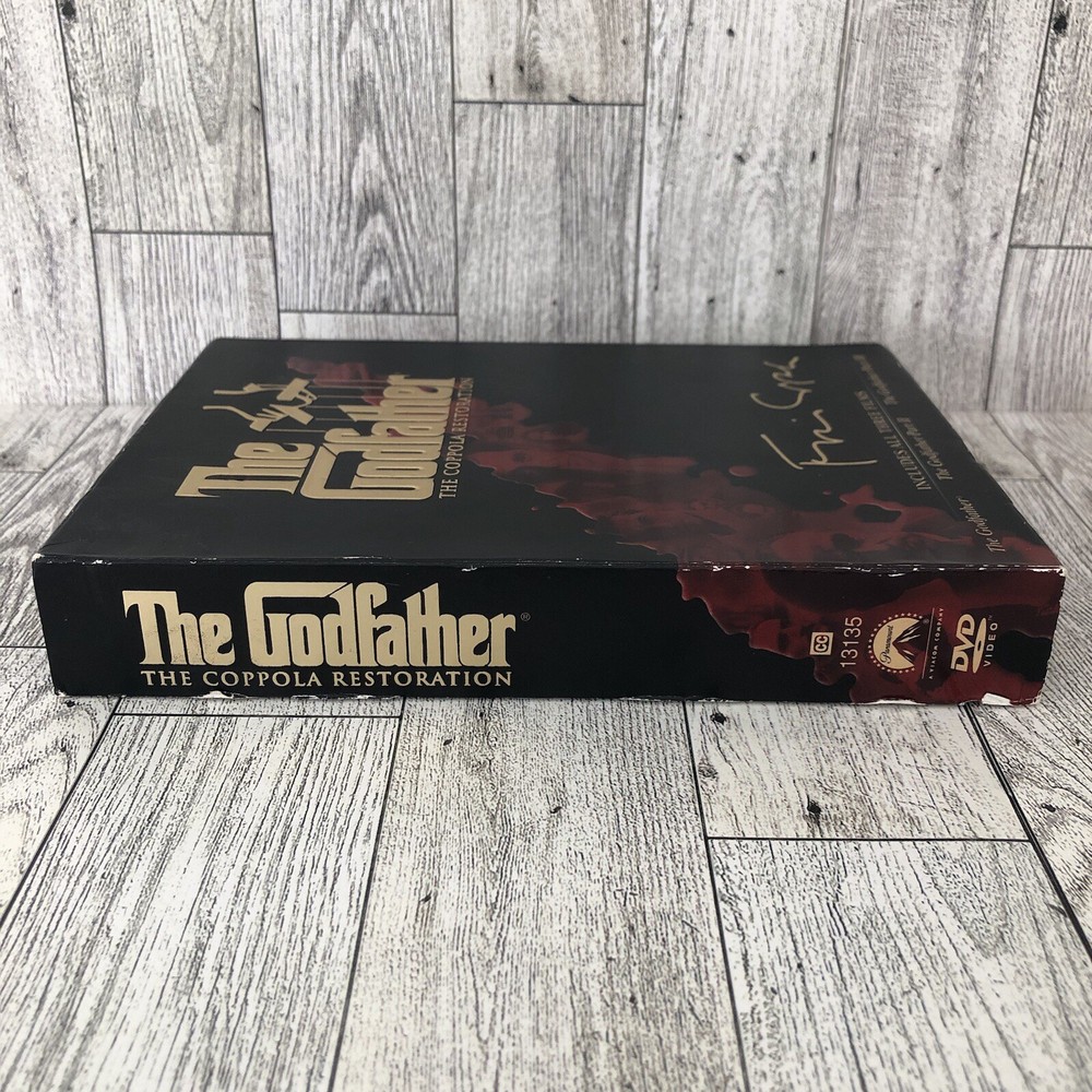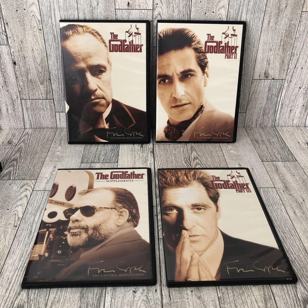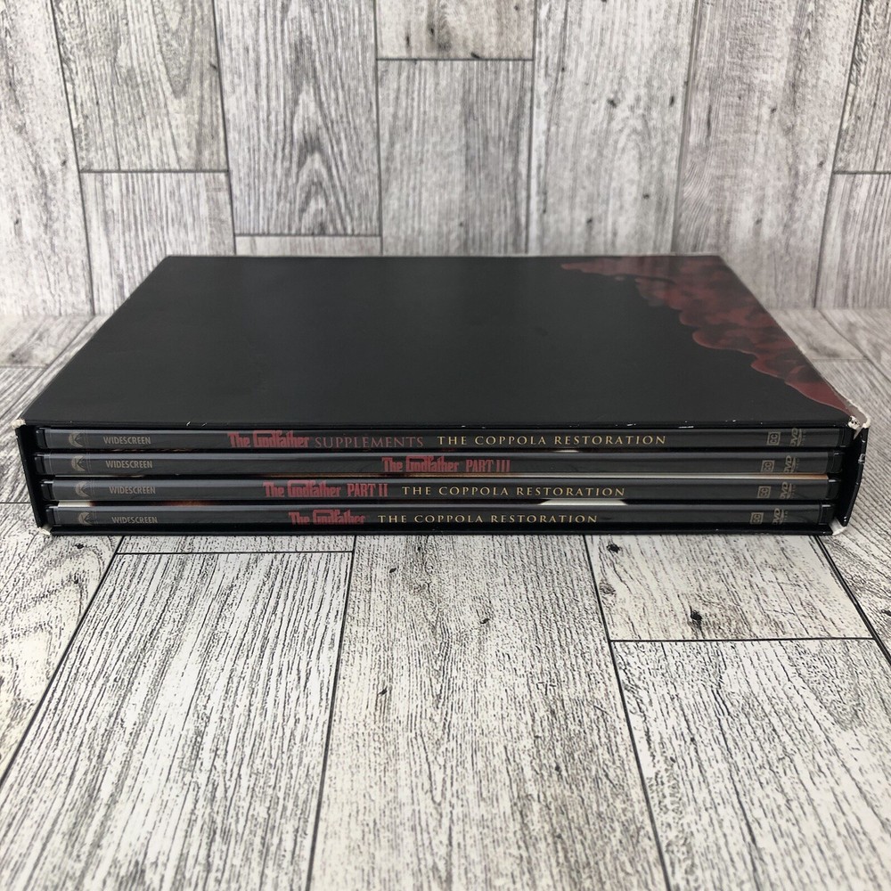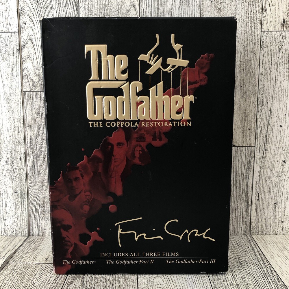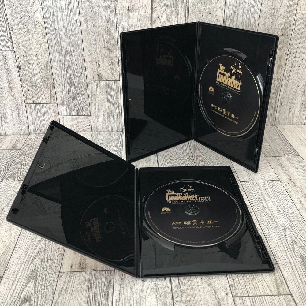 Experience the epic story of the Corleone family with this 5-disc DVD collection of The Godfather I, II, III, and more. This box set includes commentary, behind-the-scenes featurettes, documentaries, and additional scenes, all in NTSC video format with a run time of 549 minutes. The Godfather Collection is rated R and features the legendary Al Pacino as Tony Corleone. This complete series box set is presented in English language with a BOX SET case type and is the perfect addition to any movie lover's collection. The Godfather Collection is a drama genre movie with an action/adventure sub-genre and was released in 2001 by Paramount Studios. Don't miss out on this opportunity to own a piece of cinematic history. Conditions: This 5-disc DVD set is in excellent used condition. However, since DVD’s are pre-owned they could have some little scuff marks on them from usage so please look carefully at all pictures and item description before making your purchase. This item is sold as is, item in photos is the exact item you are purchasing. Comes from a smoke-free and pet-free home. Always ship fast! Offers Welcome! Check my other listings for more great deals! Thank you for stopping by and happy shopping!