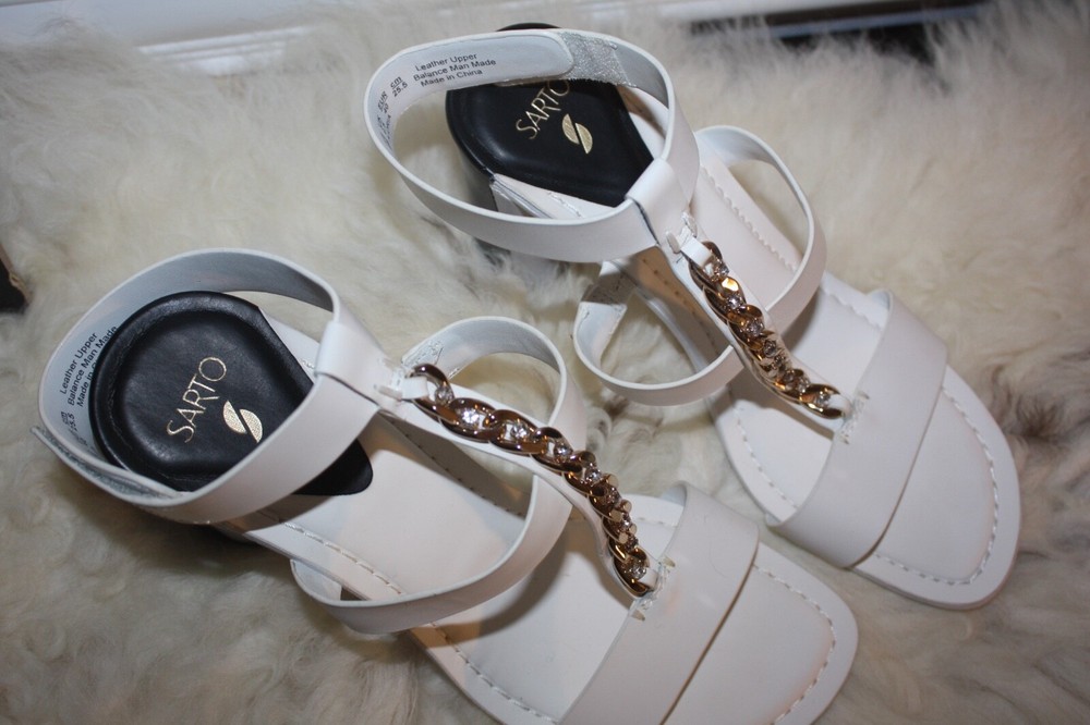 NEVER WORN - New without Box Franco Sarto Oria White Leather Ankle Strap Heels in Size 9 Leather Upper - white with black detail on heel and gold chain. Great Condition
