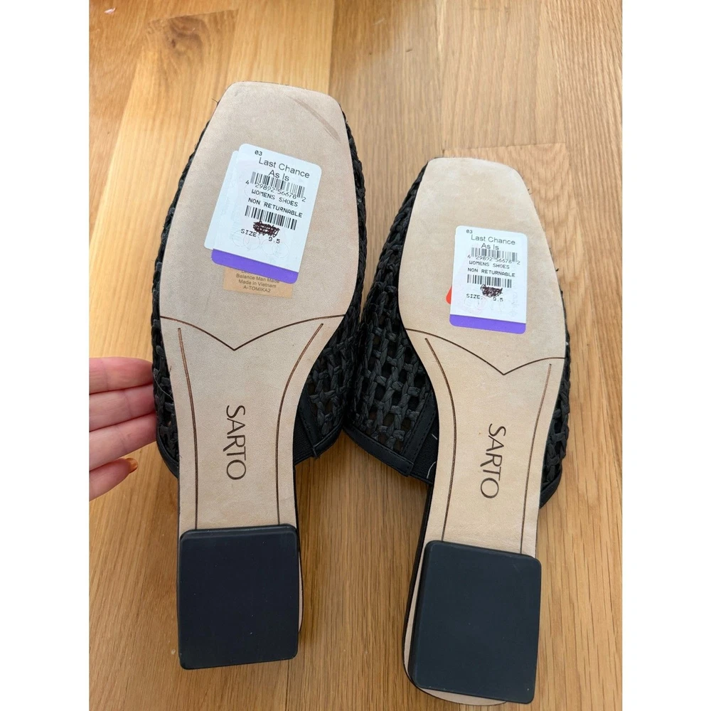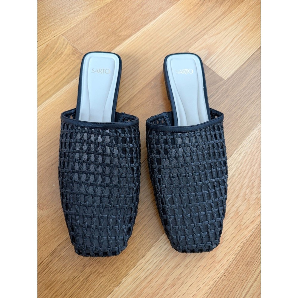 FRANCO SARTO TOBA WOVEN LEATHER MULES – WOMEN’S 9.5 – BLACK – NWOB Chic and modern Franco Sarto Toba mules featuring a woven black leather upper, sleek square toe, and easy slip‑on design. A perfect transitional style that pairs effortlessly with jeans, trousers, skirts, and dresses. New without box. CONDITION • New Without Box DETAILS • Brand: Franco Sarto • Style: Toba Mule • Size: Women’s 9.5 • Color: Black • Material: Woven leather upper • Slip‑on design • Heel Height: 0.63” A versatile, polished mule you’ll reach for all season long.