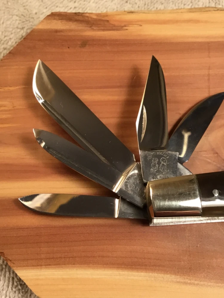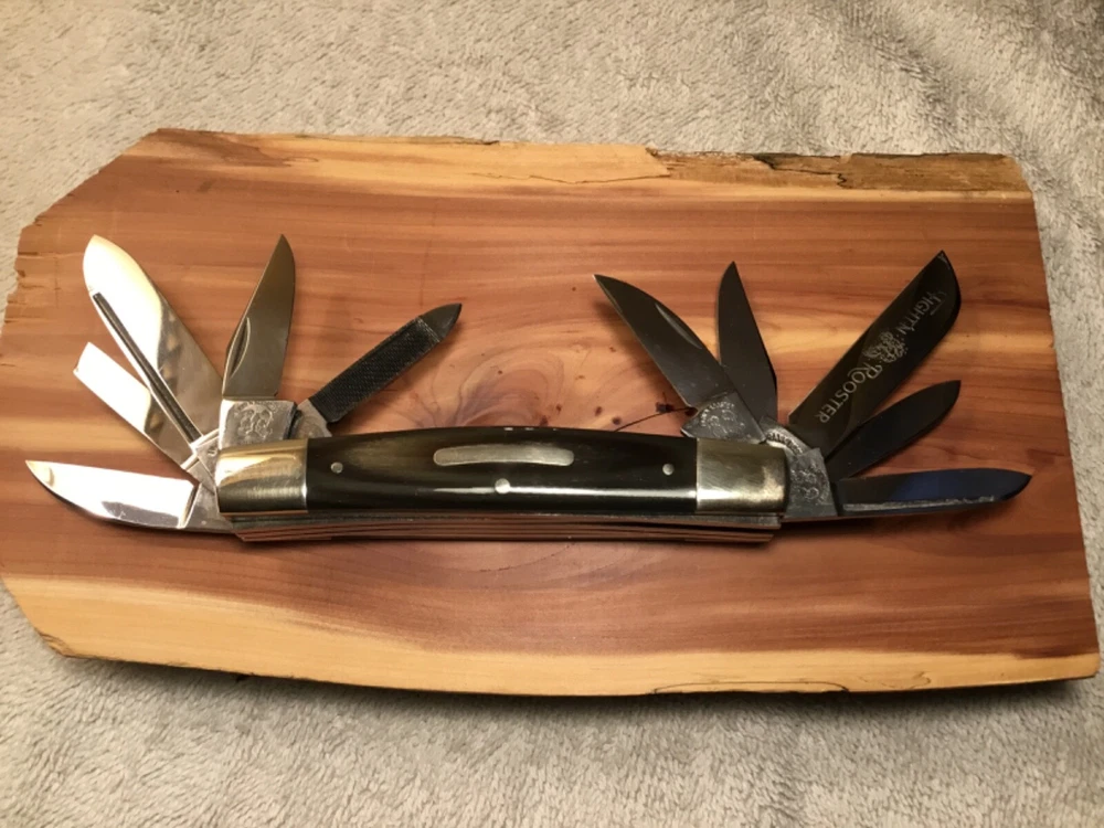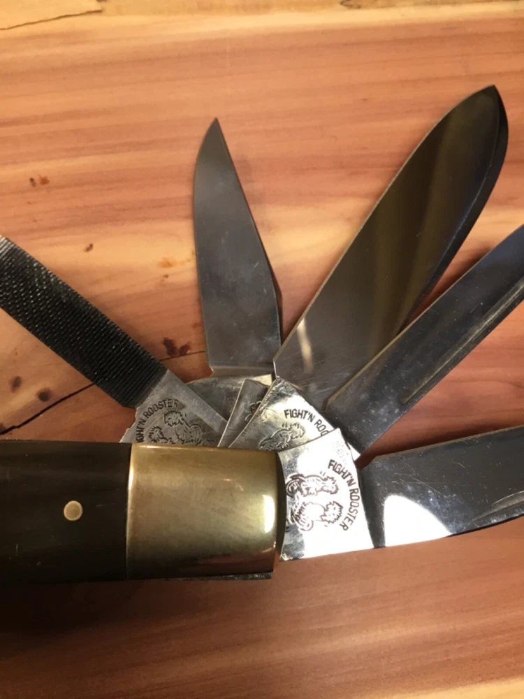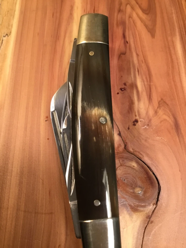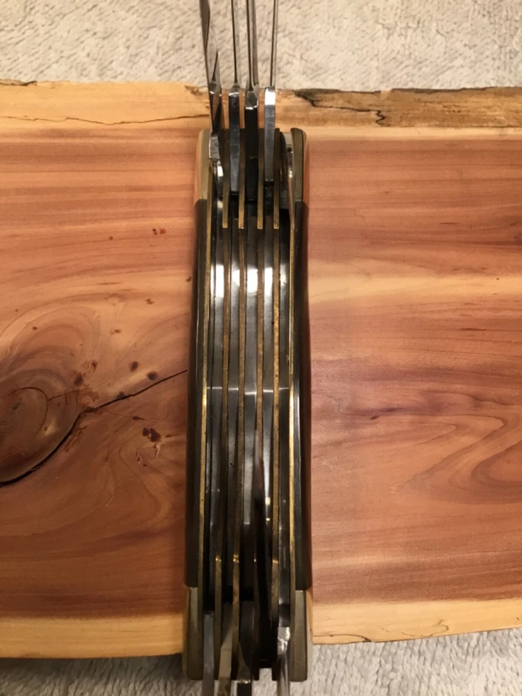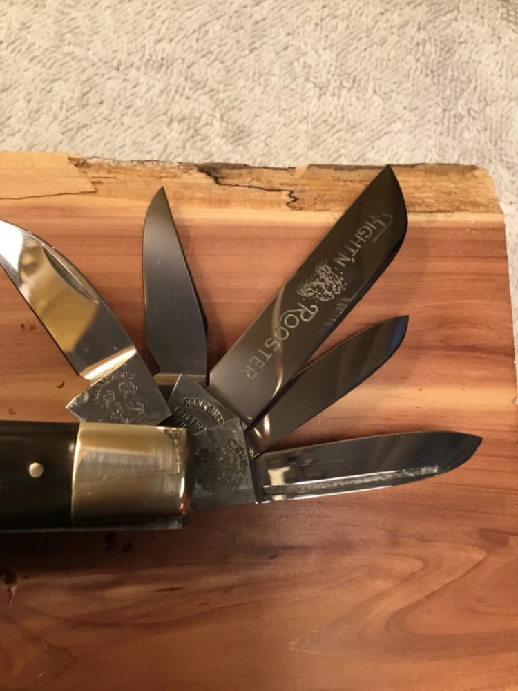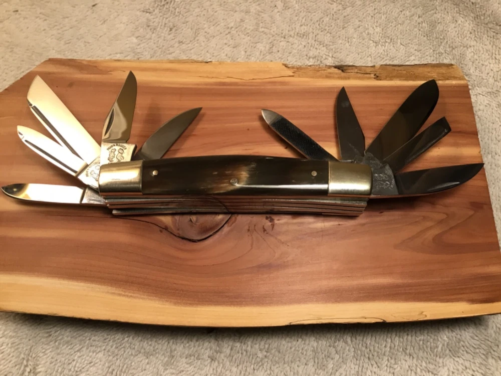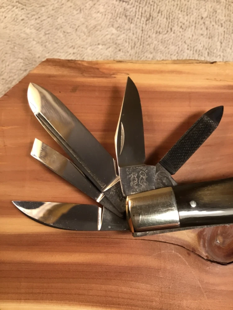 Rare limited production 1/100 knives produced, in storage since new, 1982 production, perfect Buffalo horn handles, Near mint in my collection since new, picture part of description, FOB shipping point. Wood display not included
