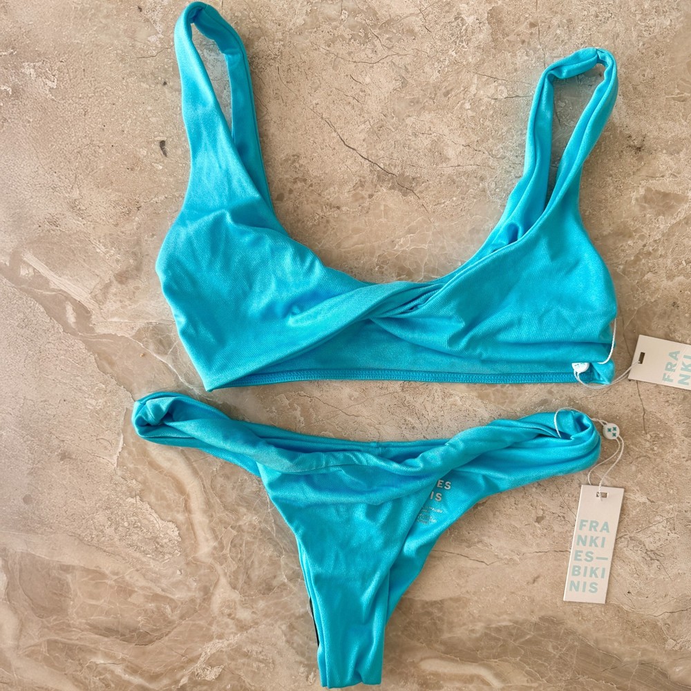 This set includes the Dexter Shine Twist Bikini Top & Katarina Cheeky Bikini Bottoms. Dexter Shine Twist Bikini Top A feminine twist on a sporty silhouette, this bralette-inspired bikini top is featured in a pull-on style and soft fabrication with a twisted front, ruched detailing, and classic scoop neckline. Hardware-free Scoop neckline Fixed shoulder straps Sheen finish Front twist detail Unpadded Katarina Cheeky Bikini Bottom Bringing you cheeky coverage in our signature SoftSwim fabric. Meet the Katarina bikini bottom, designed to boost the booty and banish tan lines. 80% Nylon + 20% Spandex SoftSwim Fabric Cheeky Coverage
