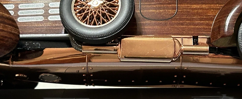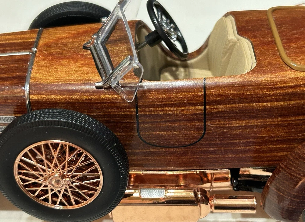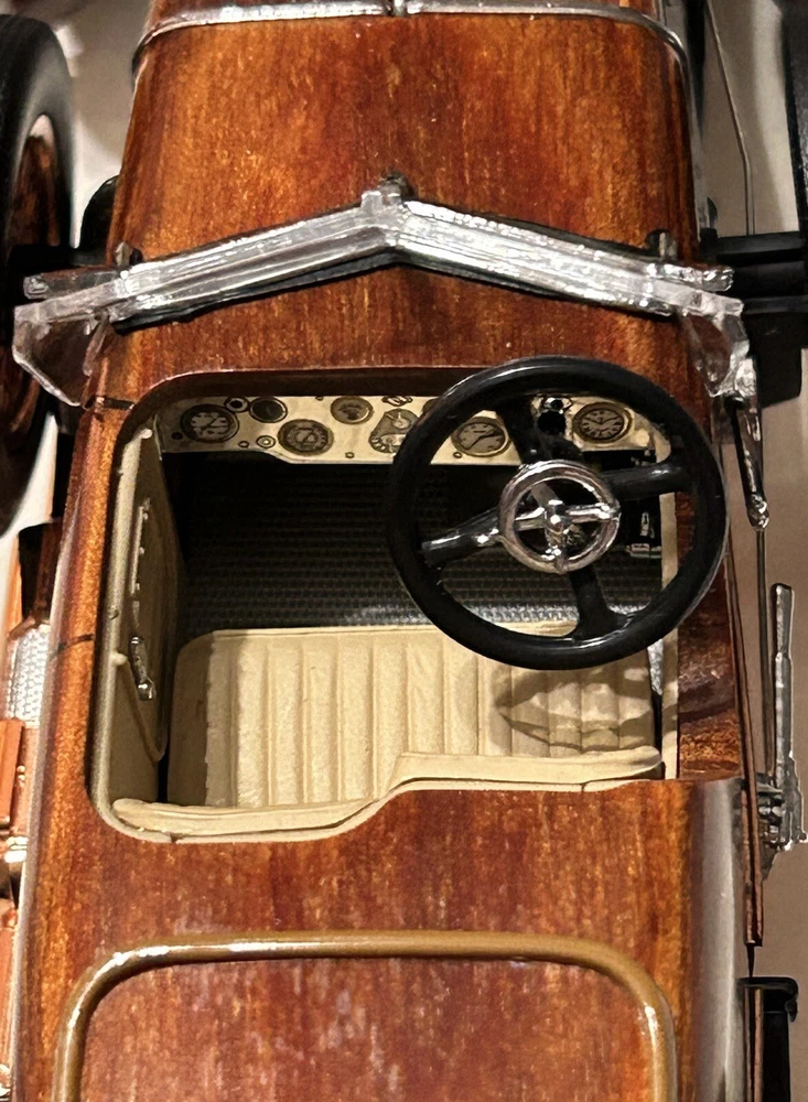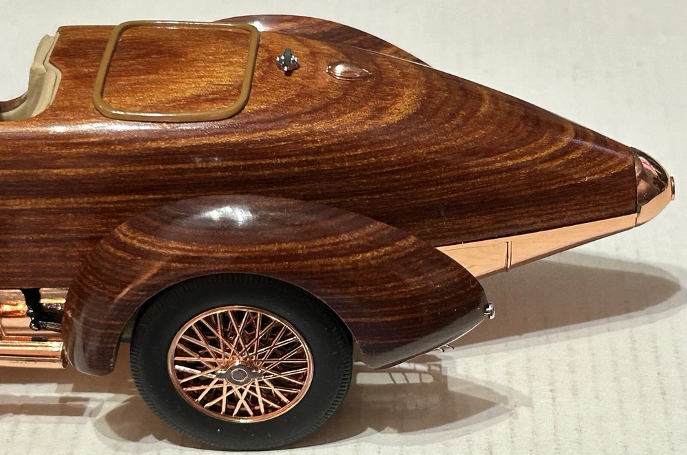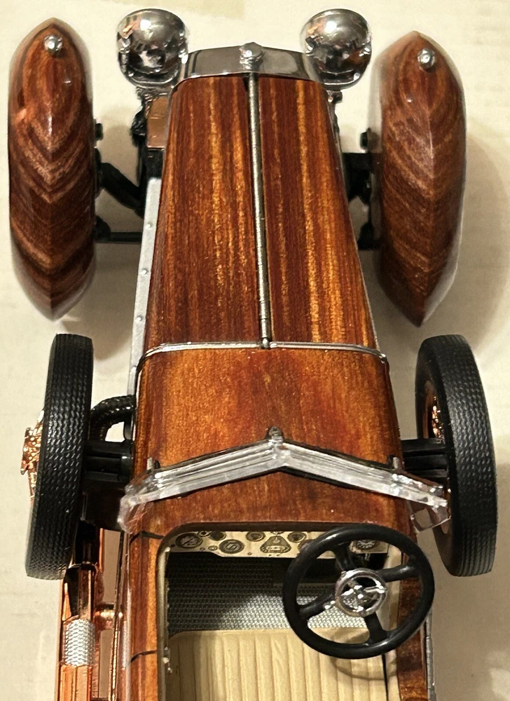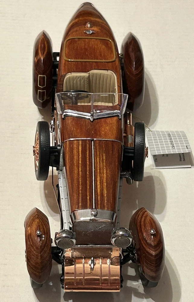 Here’s a Franklin Mint 1924 Hispano-Suiza Type H6c Speedster Model Replica was exclusively offered in 1993 to their Franklin Mint Club Members. The original 1924 Hispano-Suiza Type H6c Speedster Automobile dubbed “Queen of the Road” was a very expensive purchase and was beloved by King Alfonso XIII, who in 1905 purchased his first and inspired him to buy one every new production year from then on. During World War I, Hispano-Suiza earned a formidable reputation for building fast dependable aircraft engines with more than half of all aircraft being powered by Hispano-Suiza aircraft engines. Encompassing the same standards and vision as the aircraft engine, the Type H6c automobile was built at the same Hispano-Suiza Aircraft Factory producing power, speed, and durability. Hand-Assembled and Hand-Finished using the finest Tulipwood and Genuine Copper materials, this magnificently crafted work of art includes the signed Certificate of Authenticity, Hang Information Tag, The Care and Handling Instructions, Technical Specifications Data, The Hispano-Suiza Type H6c Speedster Tulipwood Story, Both Engine Plan and Driver’s Compartment Layouts, Display Case Full-Color Brochure, Custom Styrofoam Container, and Shipping Box. Take advantage of this opportunity to add this unique pristine museum level of superior magnificent’s to your collection today.