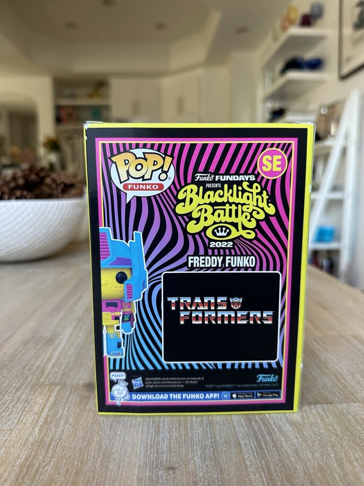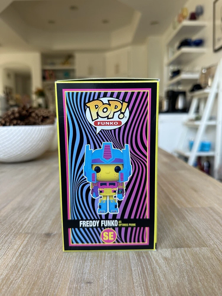 A New In Box Pop Freddy Funko as Optimus Prime Pop (Blacklight Battle) 2022 SDCC Fundays LE - 500 Pieces SE. Postage, Handling & Insurance is $11.95 for the continental U.S. Thanks for looking!