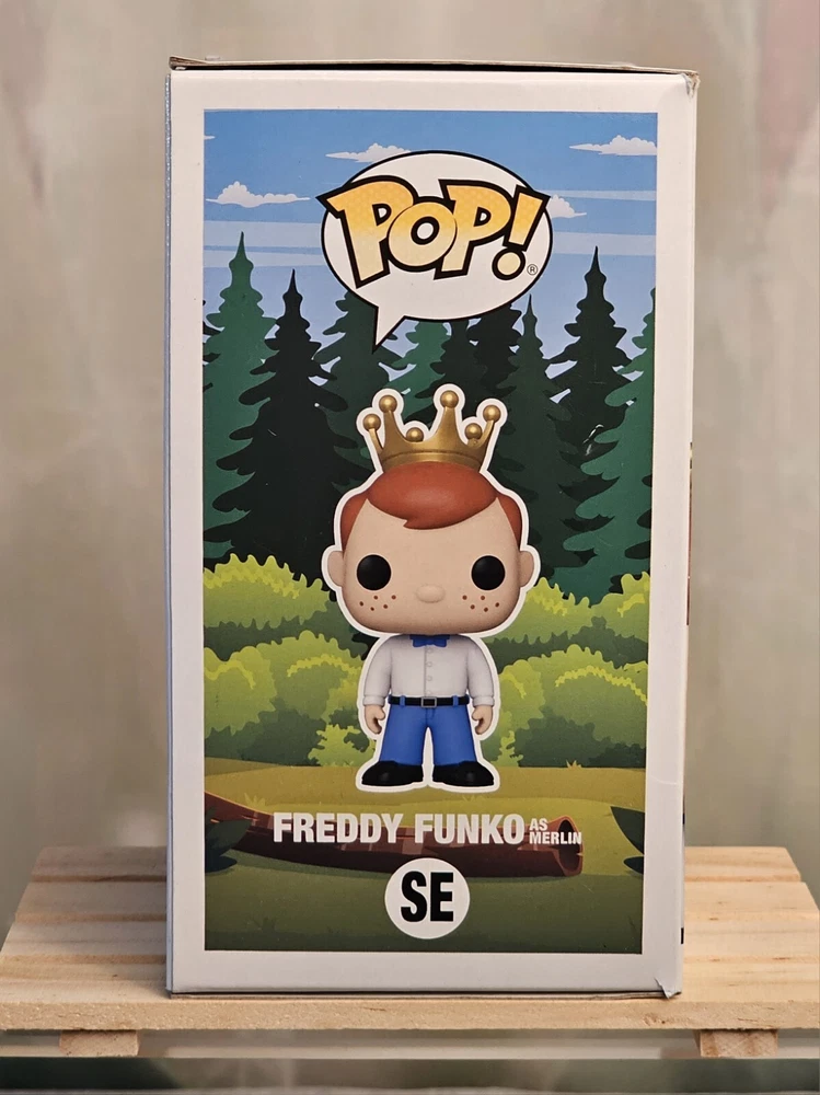Freddy Funko as Merlin Camp Fundays 2023. Has been used as display. Please see photos for any tears/dents/scuffs on box. Thank you for looking ✌️ 💚 🕯