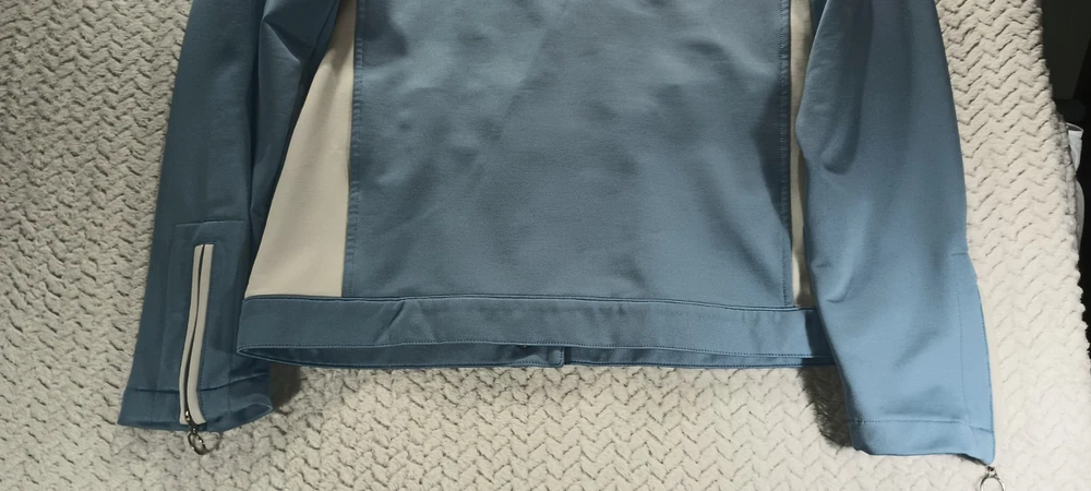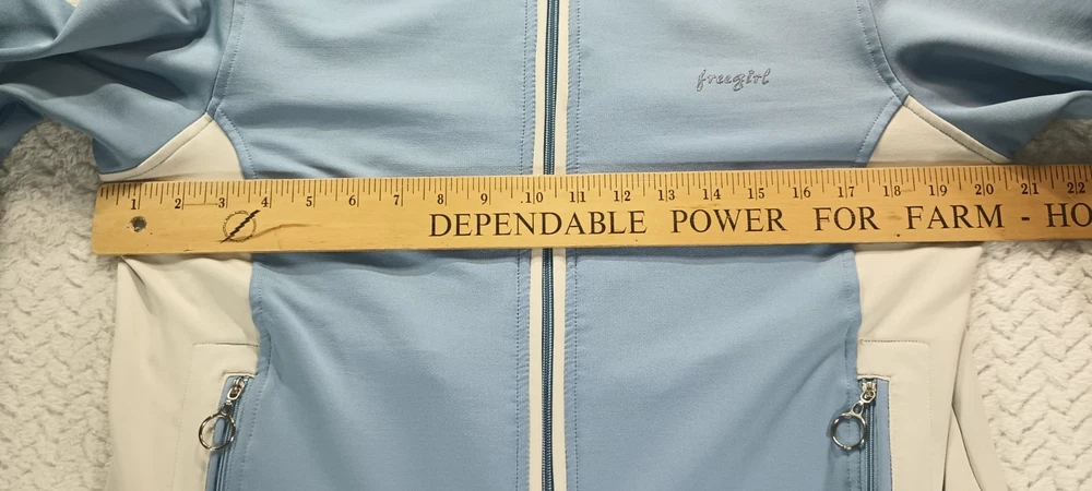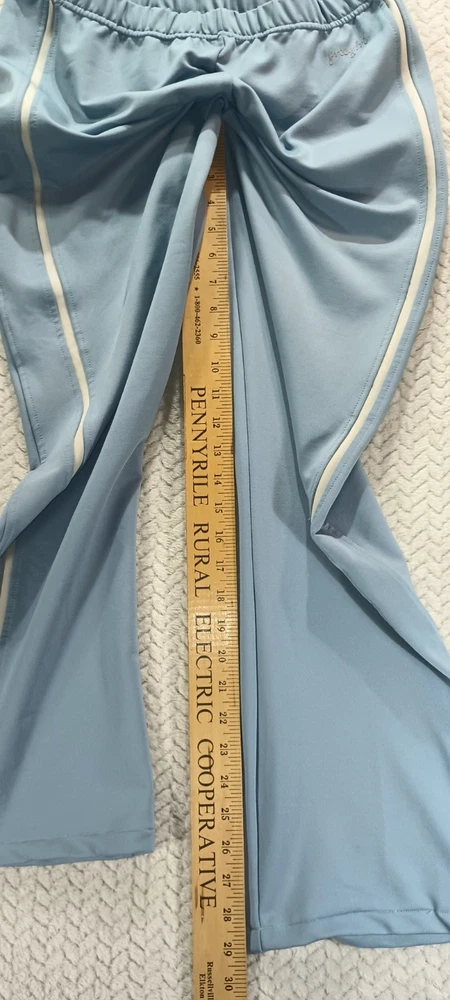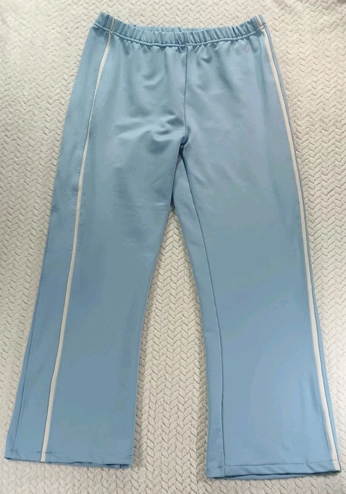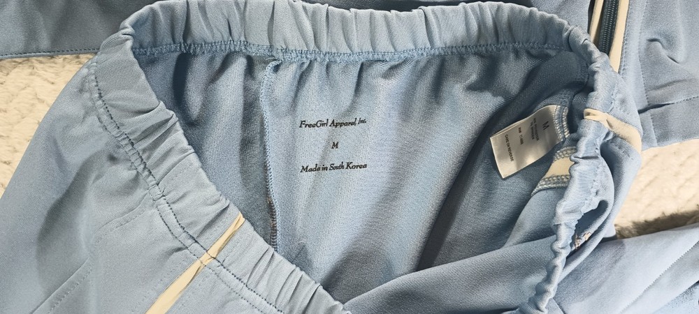 The product is a Free Girl Apparel Inc brand woman's XL jacket and medium pants in a baby or Carolina blue color, designed for activewear. The set includes a jacket and pants, perfect for a comfortable and stylish workout look. The tracksuit is ideal for women looking for a regular fit and a trendy style suitable for various occasions.