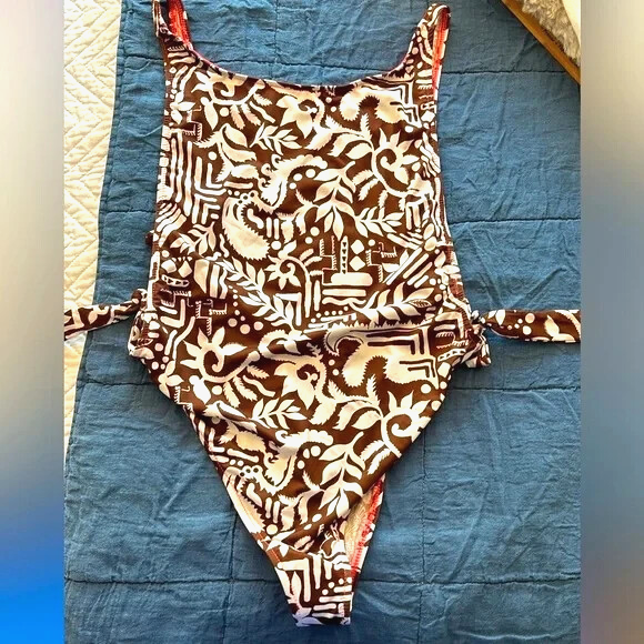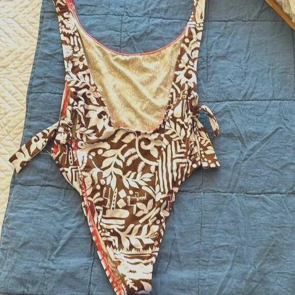 Your favorite bold one-piece from our free-est Swim collection now featured in a playful printed fabrication. Fit: Pull-on style, cheeky bottom coverage Features: Recycled fibers, printed detail allover, higher neckline, low-cut sides with adjustable ties, flattering high-cut legs, low open back, fixed shoulder straps Why We <3 It: This minimal one-piece is both flattering and fun. Care/Import Hand Wash Cold Made in the USA Contents 96% Recycled Polyamide, 4% Elastane Lining: 87% Recycled Polyamide, 13% Elastane