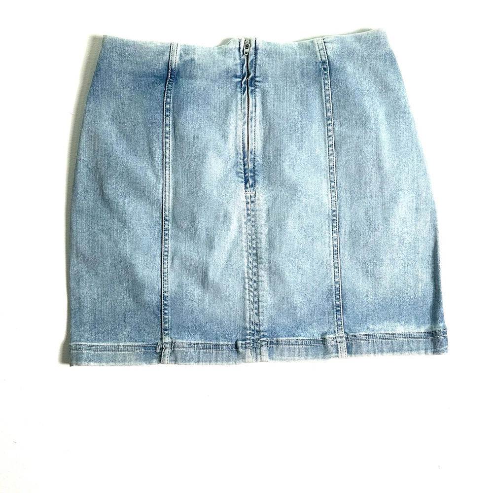 New without tags Perfect condition Back zipper closure Light wash blue denim Has some stretch See pictures for approximate measurements All sales are final.