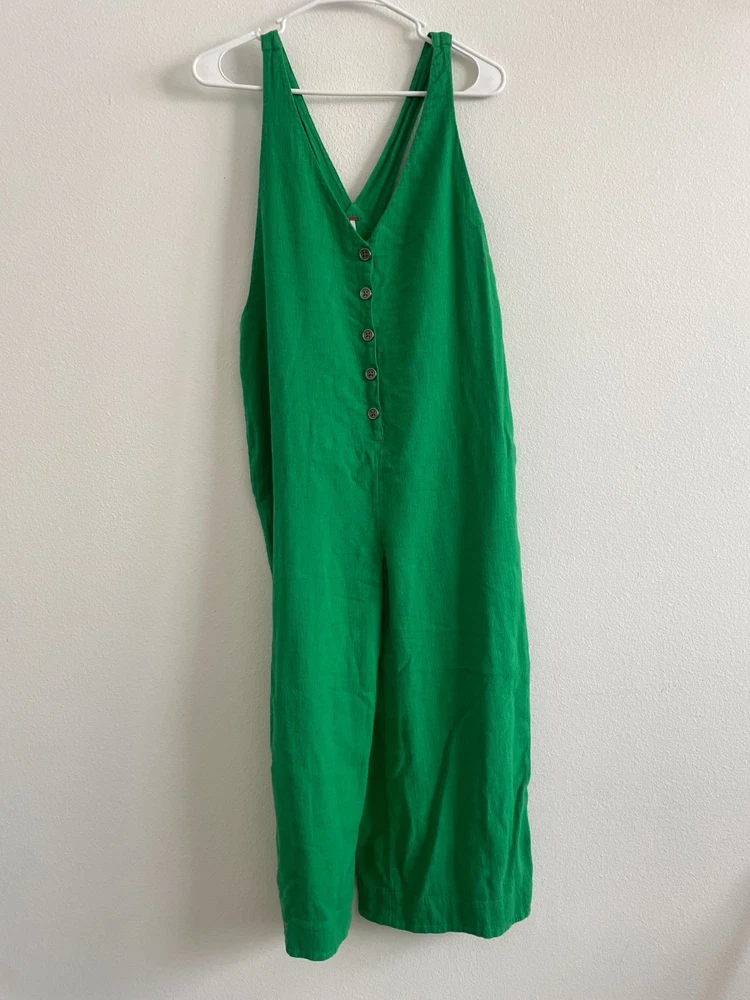 Free People Jumpsuit Women S Kelly Green Cotton Wide Leg Beachy Casual Boho Excellent Used Condition. This item has no rips, stains or defects. Please see photos for measurements, care tag and material tag.