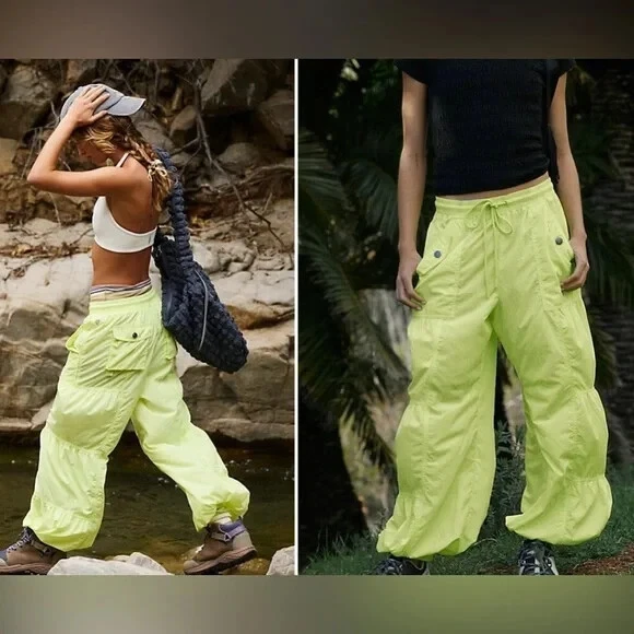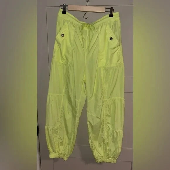 Take a hike in these functional and fun pants featured in a water-resistant nylon with shirred panels and elasticated cuffs. Fit: Relaxed, wide-leg fit, mid-rise, ankle-length Features: Water-resistant nylon, semi-sheer fabrication, stretchy elastic waistband with adjustable drawstring, shirred paneling, elasticated cuffs, breathable design Why We <3 It: Made for medium-impact activities and your favorite hikes, these are more than just your average wide-leg pants. Care/Import Machine Wash Cold Import Size + Fit Measurements for size small Inseam: 28 in Waist: 29.5 in Hips: 43 in Rise: 11.5 in Contents 100% Polyamide