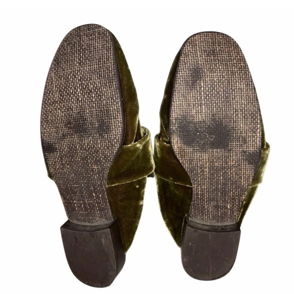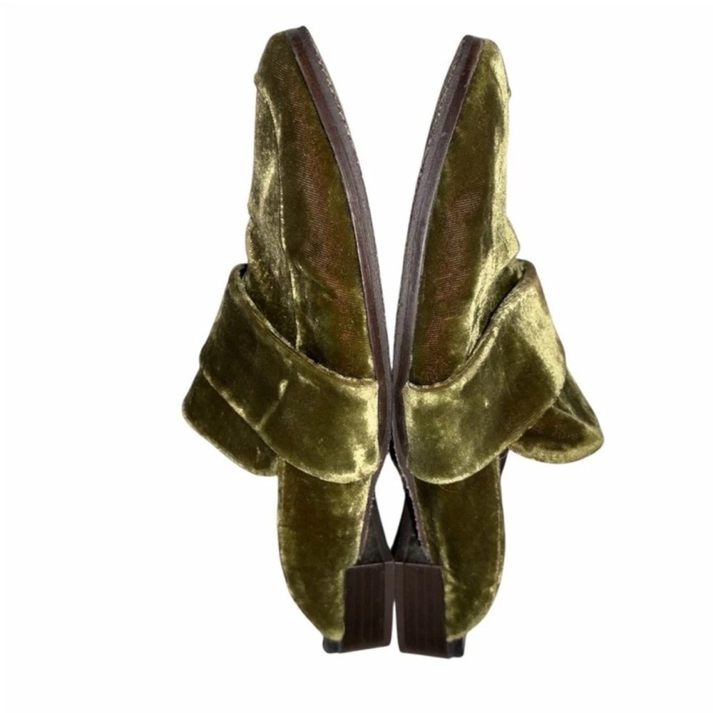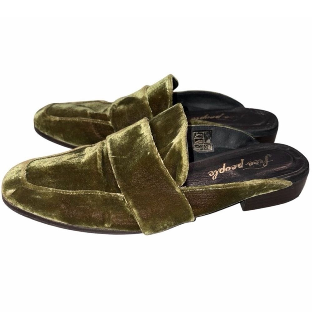 Free People Olive Green Crushed Velvet At Ease Loafers Mules Slides size 38 Excellent condition Women’s, ladies, shoes, slides, slip on, velvet, green, boho, bohemian, classic, fall, winter, preppy, at ease loafer, loafers, mules, flats, free people