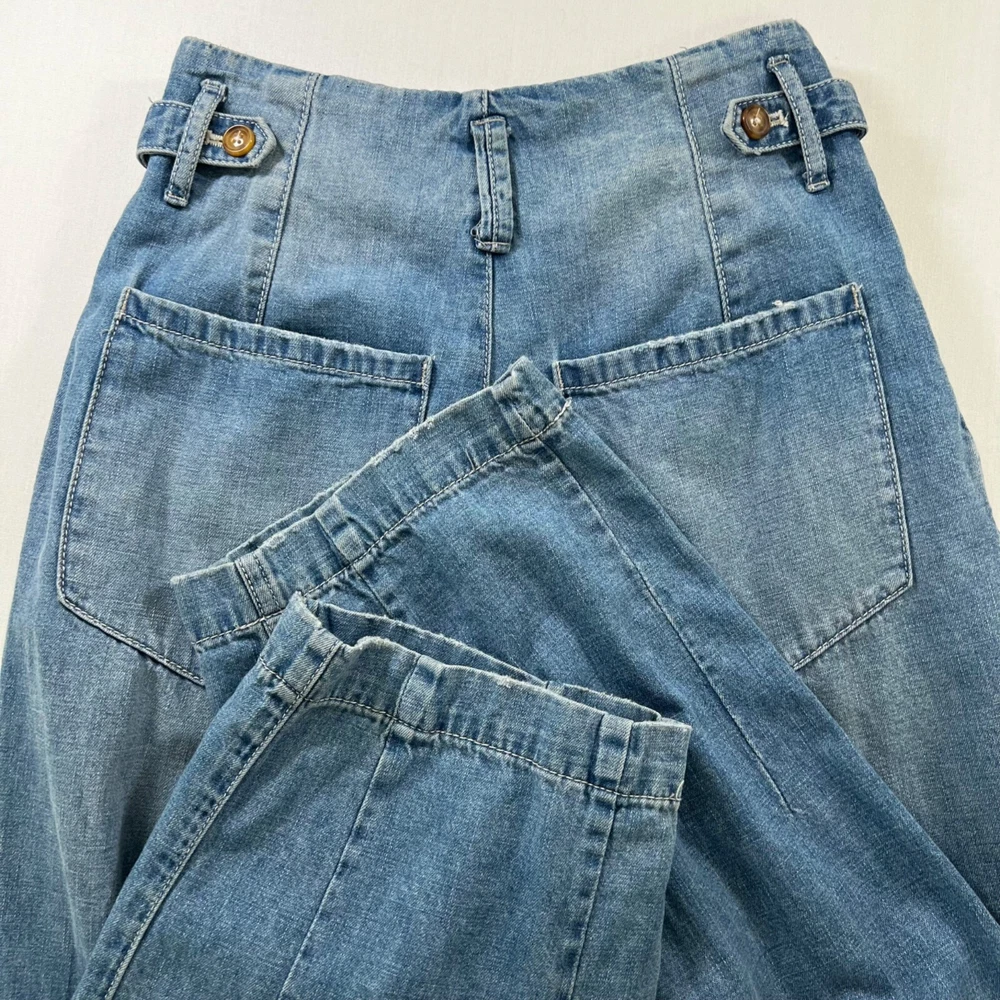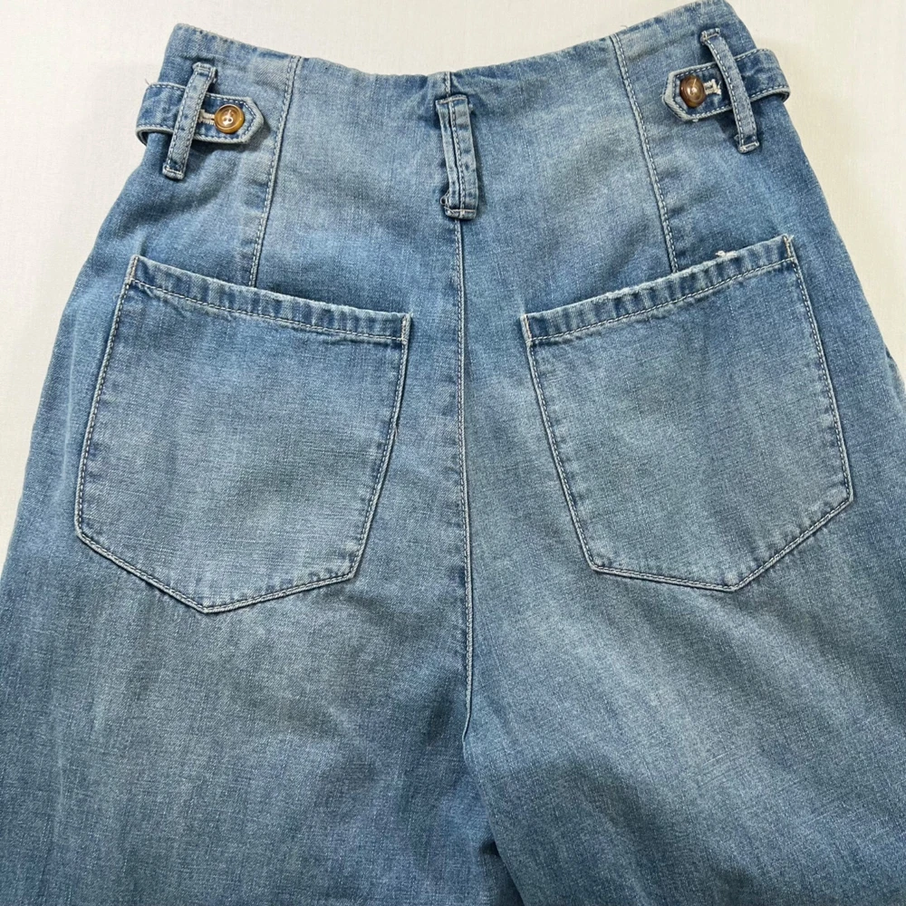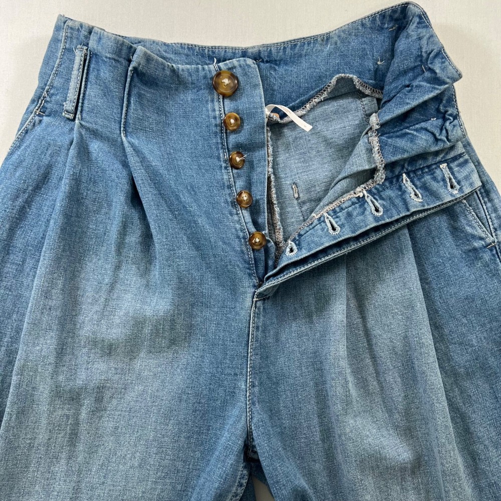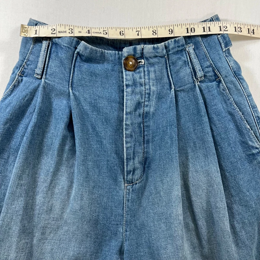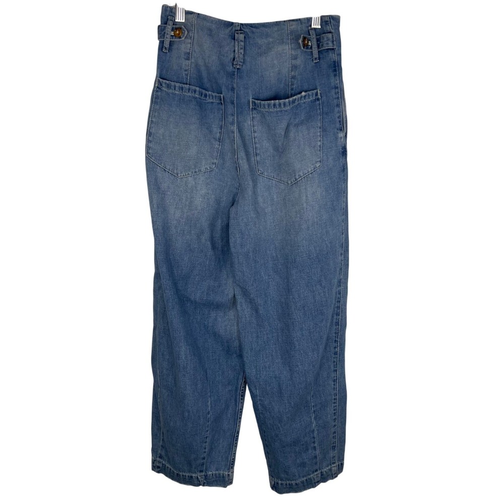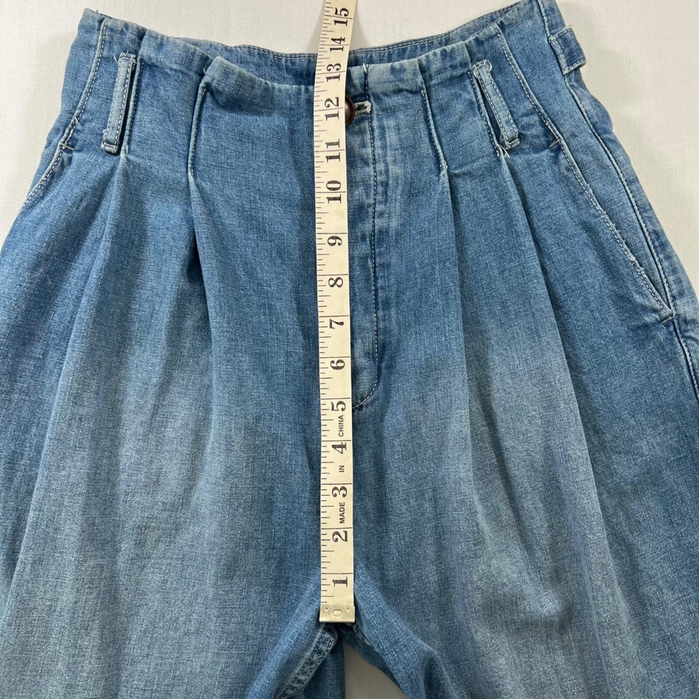 Brand: Free People Style: Pleated Wide Leg Jeans Item Details: Barrel jeans Pleated waistband Buckle details Wide leg Button fly 4 Pockets High rise Baggy Ankle length Condition: Excellent, pre-owned condition Color: Caspian Sea Material: 81% Cotton / 19% Linen Marked Size: 0 **See measurements Measurements: Measurements are taken seam to seam when possible, with the item lying flat and not stretched. Items may not be true to size label (especially if it is denim or vintage), please refer to the actual measurements listed to assist you with fit. NOTE: Not all designers follow the US standardized sizing chart. Waist: 24” ( 12" flat across) Rise: 13" Inseam: 23 1/2" Terms of Sale Your purchase is very much appreciated. We want this to be an enjoyable experience for both you and us! We'd love for you to be a happy repeat customer! Thank you for your support of our small business. Payment: We can only ship to the address on file with eBay. For auction/best offer items, please pay within 2 days of auction's end. Buy It Now purchases require immediate payment. Returns Not Accepted: All sales final. We do our best to inspect our items thoroughly and to describe them accurately with measurements, pictures and details. Please refer to all and ask any questions prior to bidding/buying. We do not offer returns for items that don't fit or if you decide you no longer want it. That being said, we do stand behind everything we sell for accuracy of description. Item # 57O