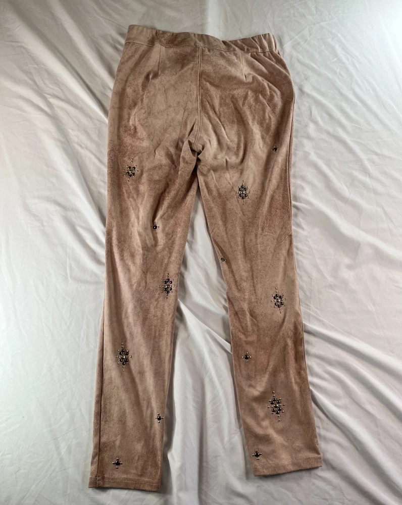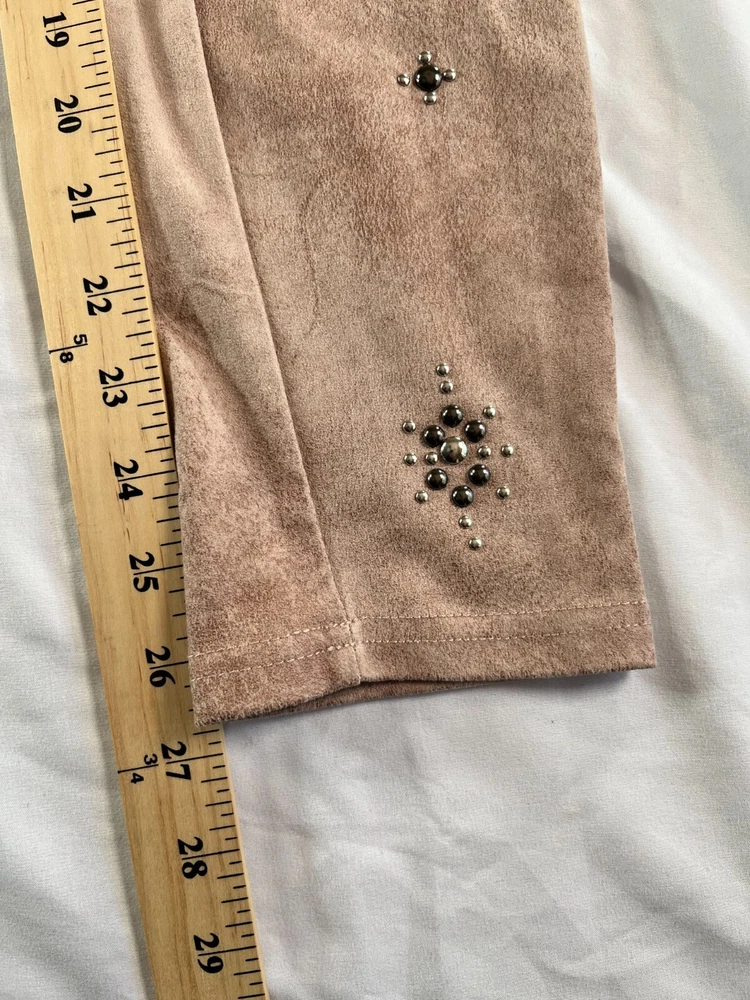 Occasion: Casual, Party/Cocktail Material: Polyester Blend, Suede Size Type: Regular Rise: High (Greater than 10.5 in) Type: Leggings Department: Women Color: Beige Features: Elastic Waist, Pull-on Waist Size: 28 in UPC: Does not apply gtin13: Does not apply Model: Free People Vegan Size: 26 Seller Notes: “Great condition. No rips, tears, stains or smell.” Personalize: No Theme: 70s, 80s, Biker, Bohemian, Clubwear, Cowgirl, Retro Handmade: No Style: Cropped Season: Fall, Spring, Summer, Winter Brand: Free People Product Line: Free People Vegan Inseam: 27 in Pattern: Solid Fabric Type: Faux Suede Accents: Studded