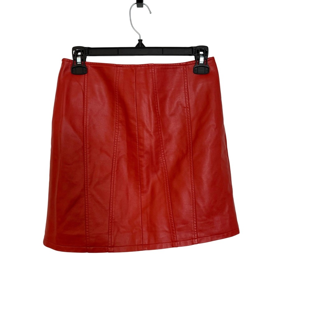 Free People Skirt Women’s Size 0 Red/Orange Zip Front Faux Leather Mini No flaws. Please see photos.