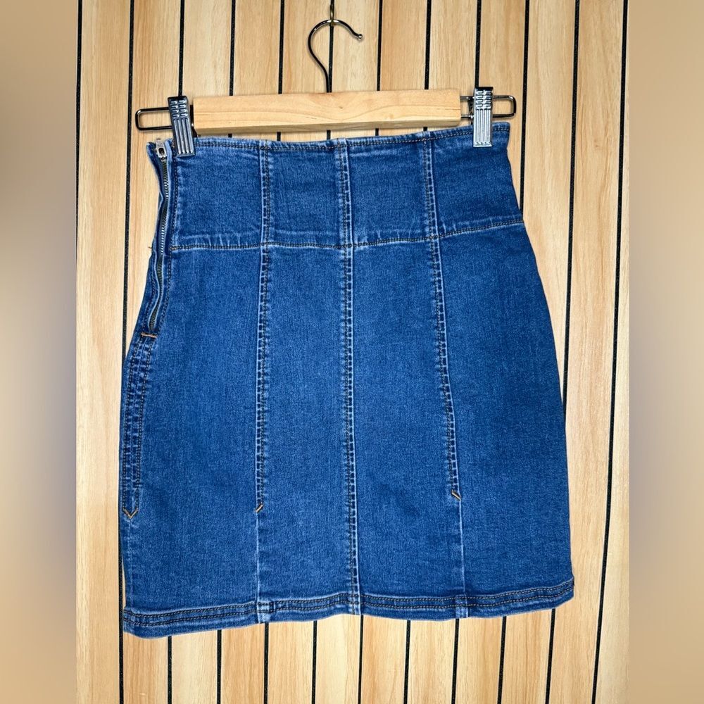 Free People stretch mini skirt. Great condition, small front side slit and side zipper. Size 0 As a 5-star seller across multiple platforms, I take great care in inspecting all items for flaws. If any issues are found, they will be clearly noted in the listing. However, please keep in mind that I am human, and sometimes I might miss something. Please review all pictures carefully and feel free to reach out with any questions—I'm always happy to help! If the item is not new with tags, please manage your expectations, as these are pre-loved, worn items. Thank you for supporting sustainable shopping! For your protection and mine, all items are photographed before, during, and after packaging.