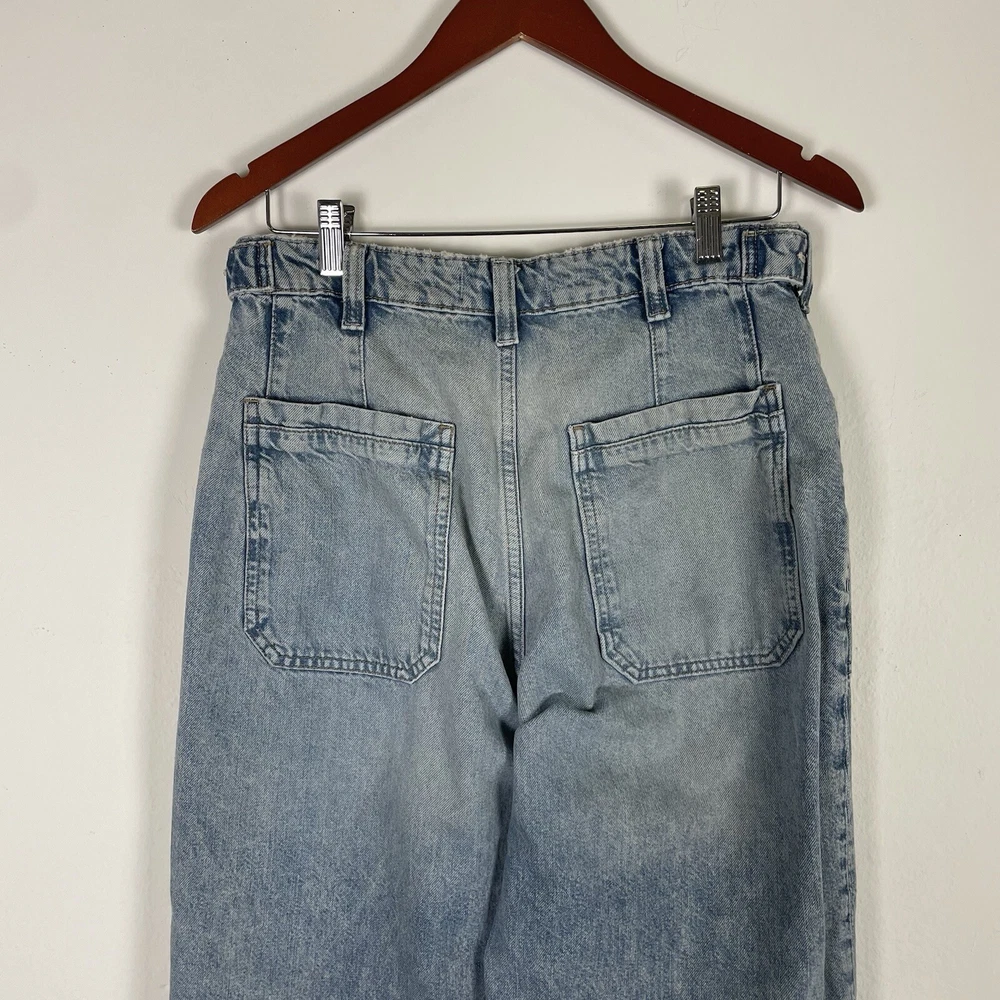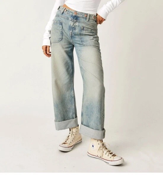 Free People We The Free Women’s Palmer Cuffed Jeans in La La Land Size 28 OB1824199 Button Fly Festival Bohemian Hippie Baggy Relaxed Fit Adjustable Oversized