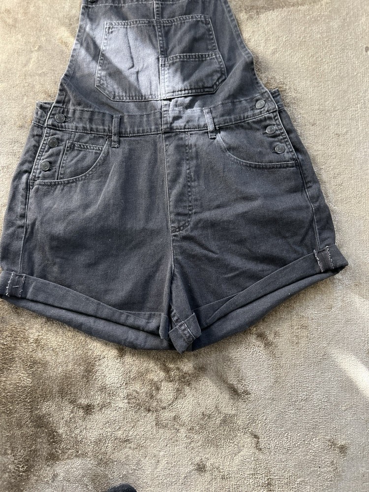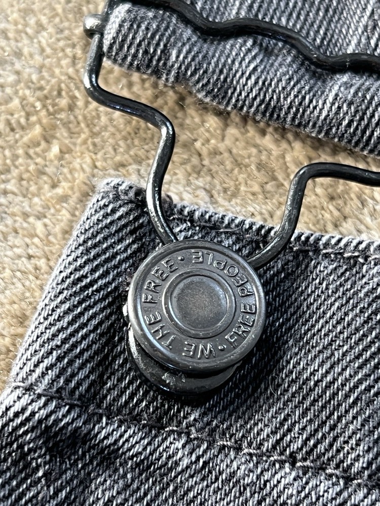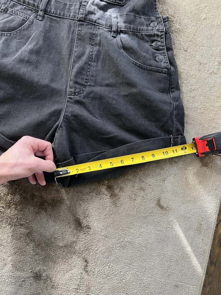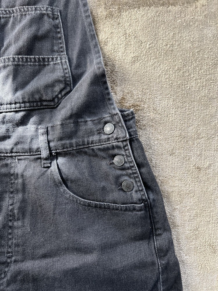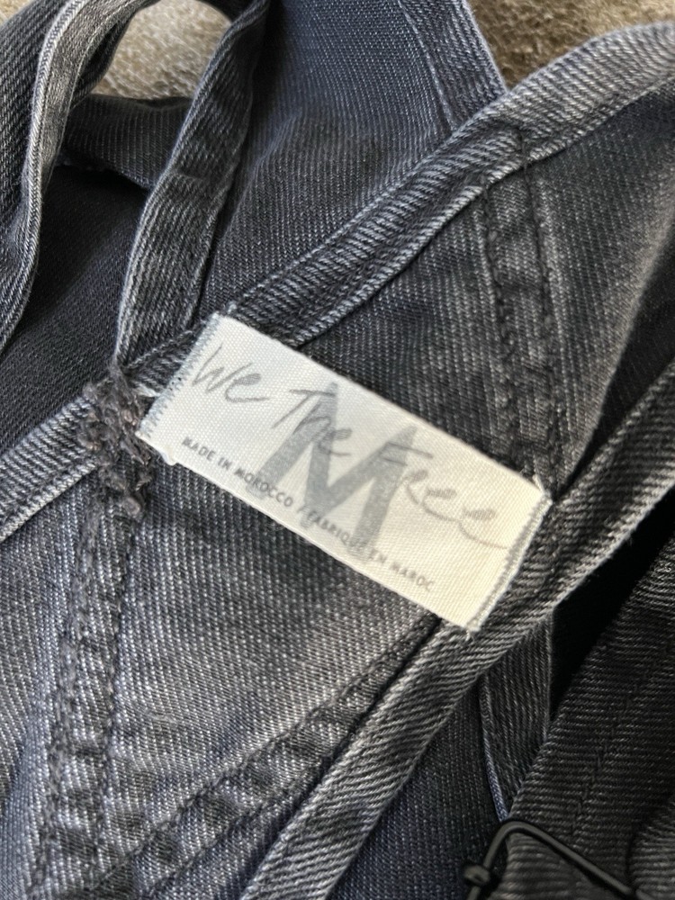 Free People Ziggi denim overalls in a versatile dark charcoal/black wash. Classic workwear-inspired design with adjustable shoulder straps, side button closures, and multiple functional pockets. Structured yet comfortable cotton denim that’s easy to style year-round over tees, knits, or tanks. Designed in Italy with quality construction and timeless Free People styling. ⸻ DETAILS • Brand: Free People • Label: Ziggi • Size: Medium • Color: Dark charcoal / black • Fabric: Cotton denim • Designed in Italy • Made in Morocco • Style: Denim overalls / dungarees ⸻ CONDITION Excellent pre-owned condition. No holes, stains, or repairs. Clean wash with minimal wear. All hardware and straps fully functional. MEASUREMENTS (laid flat, approx.) • Bib width (top): ~11.5” • Waist (across at side buttons): ~16” • Rise (top of bib to crotch seam): ~16” • Hip (approx., below buttons): ~18” • Short inseam: ~4.5” • Leg opening (each): ~11”