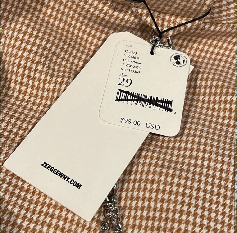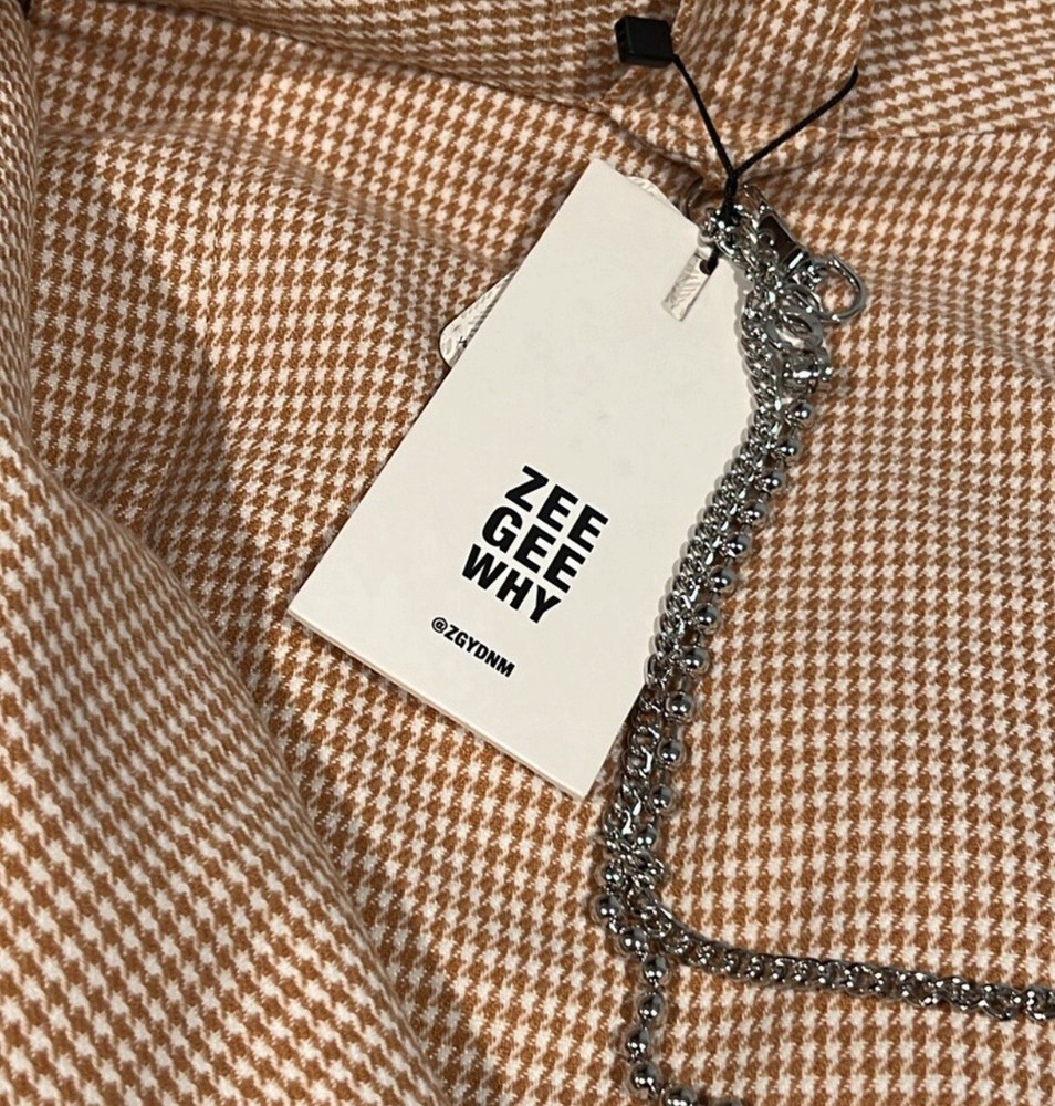 The Free People x ZGY Beige Wide-Leg Women's Pants in size 29 are stylish trousers featuring a wide-leg design. Made of cotton material, these pants come with a chain embellishment and are brand new with tags. The neutral beige color adds versatility to the piece, suitable for various outfit choices. Perfect for those who appreciate trendy and unique fashion pieces, these pants offer a chic and fashionable look for women.