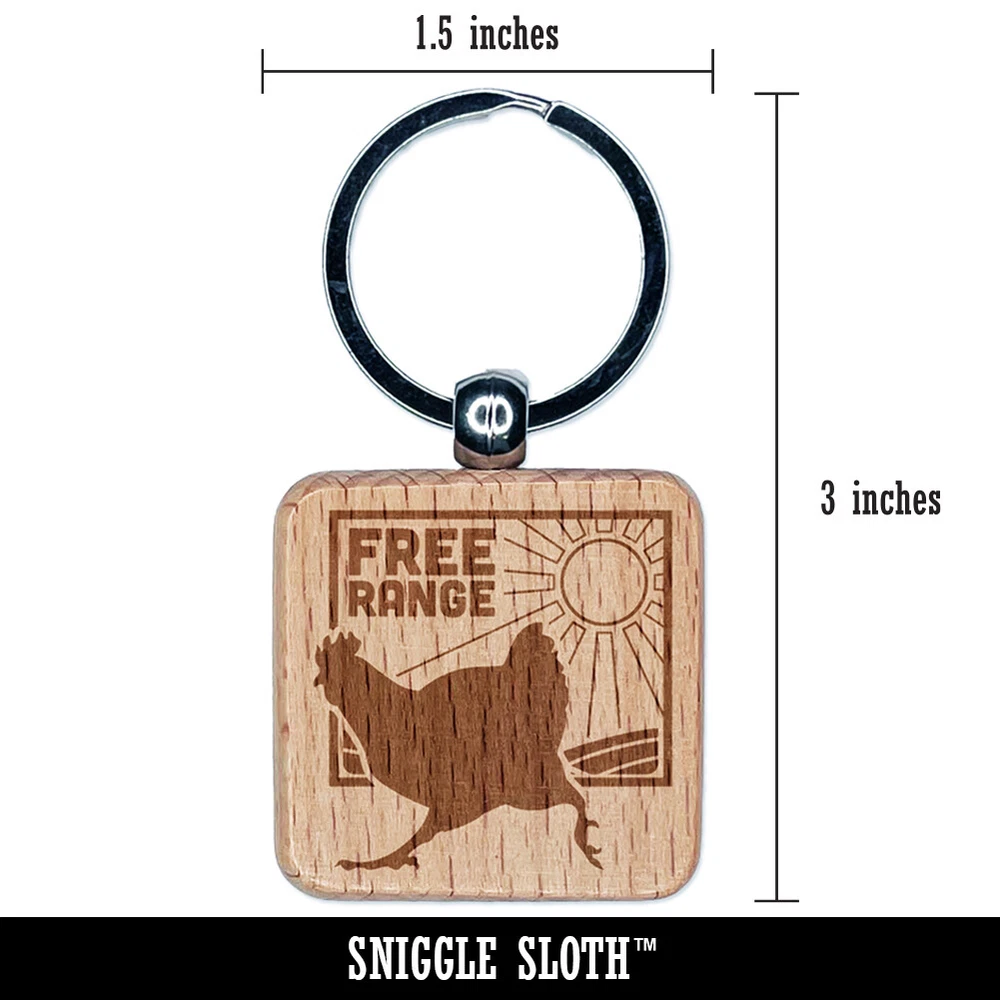 Free Range Chicken Running Engraved Wood Square Keychain Tag Charm