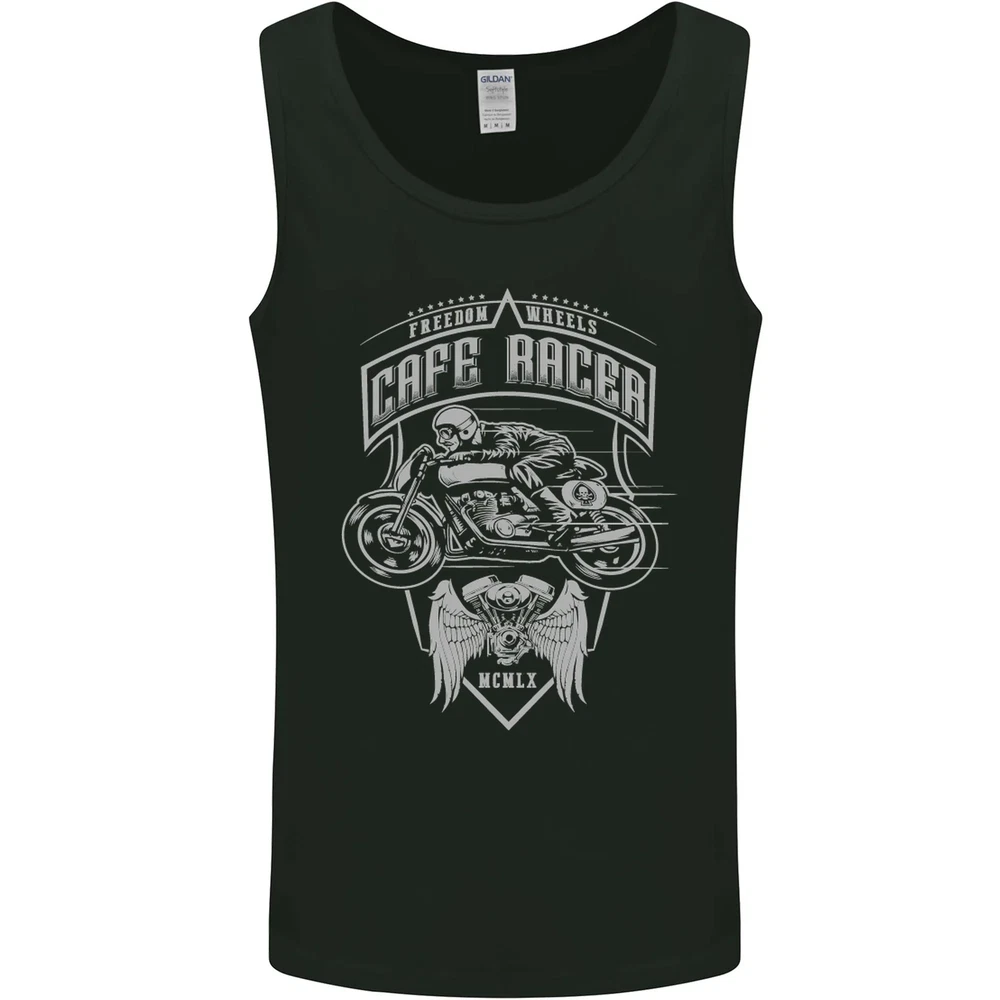 Freedom Wheels Cafe Racer Biker Motorcycle Mens Vest Tank Top