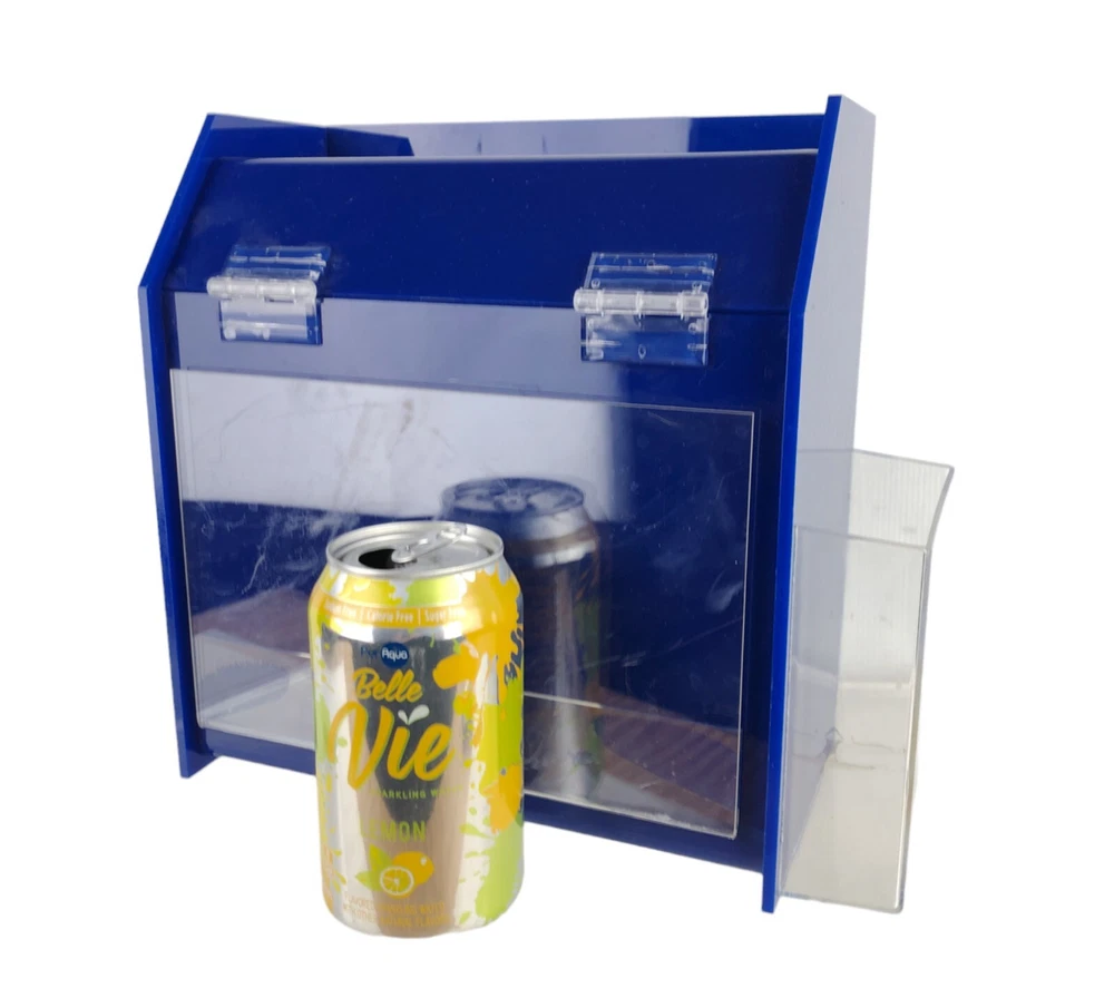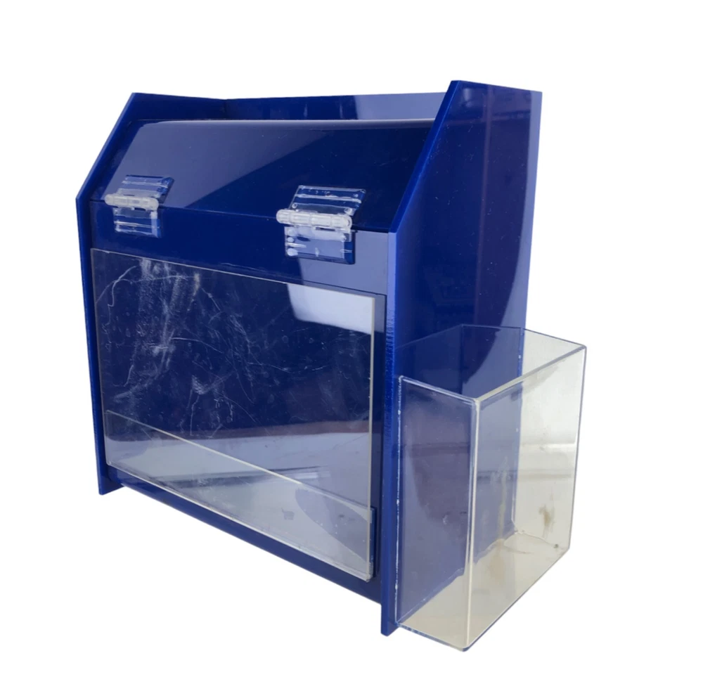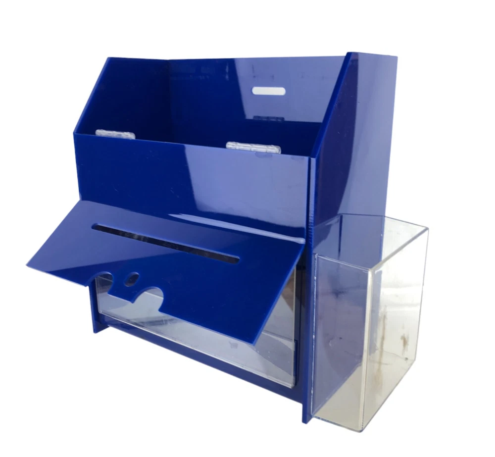 Freestand / Wall Mount Ballot Box w/Entry Form Pocket Blue Plastic 11 x 11 x 5"