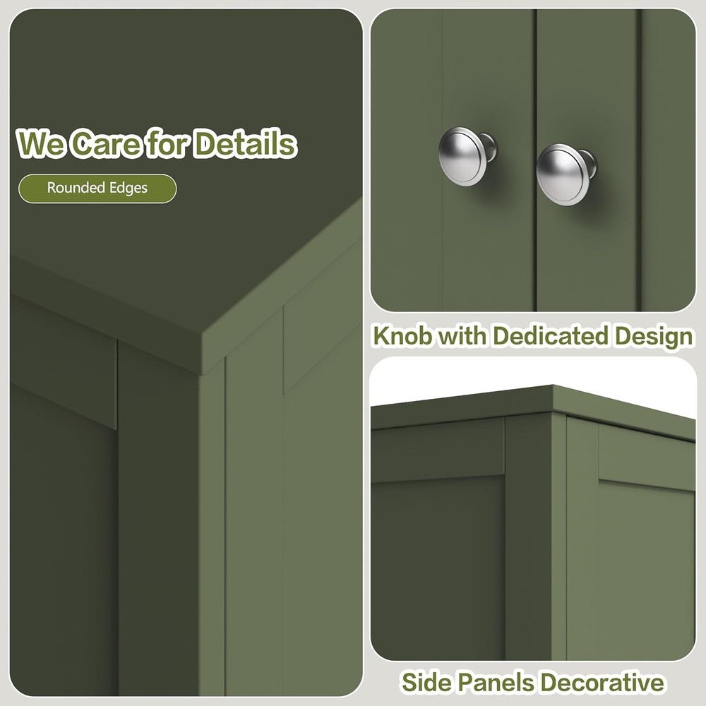 Product Description About this item [Ample Storage Capacity] The bathroom cabinet comes with an upper and a lower compartment, offering abundant room for your hairdryer, towels, makeup, bath products, and other essentials. [Tailored Storage Solution] Effortlessly modify the shelf inside each storage cabinet to five distinct positions, enabling you to conveniently store items of different heights with ease with this pantry cabinet. [Quality Meets Elegance] Constructed from top-grade MDF and fitted with an anti-tipping mechanism, this bathroom storage piece is robust and steadfast. Its attractive decorative panels add a touch of charm to your bathroom. [Safety Assured] The smooth rounded corners reduce the risk of accidental knocks, while the included anti-tip kit allows you to firmly attach the bathroom cabinet to the wall. These features work together to ensure a secure living space. [Easy to Assemble] With labeled components and clear instructions, putting together this freestanding cabinet is a breeze. On Aug 12, 2025 at 18:35:59 PDT, seller added the following information: