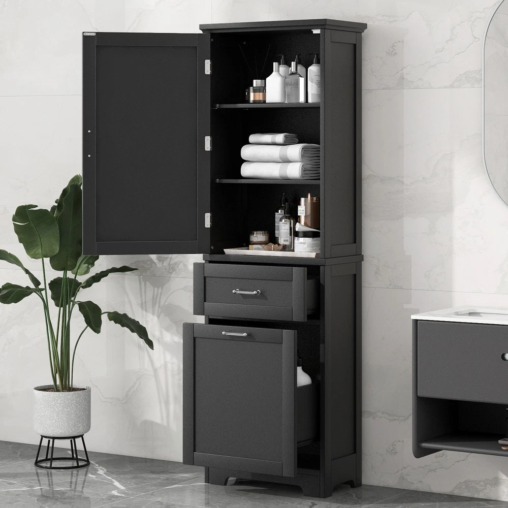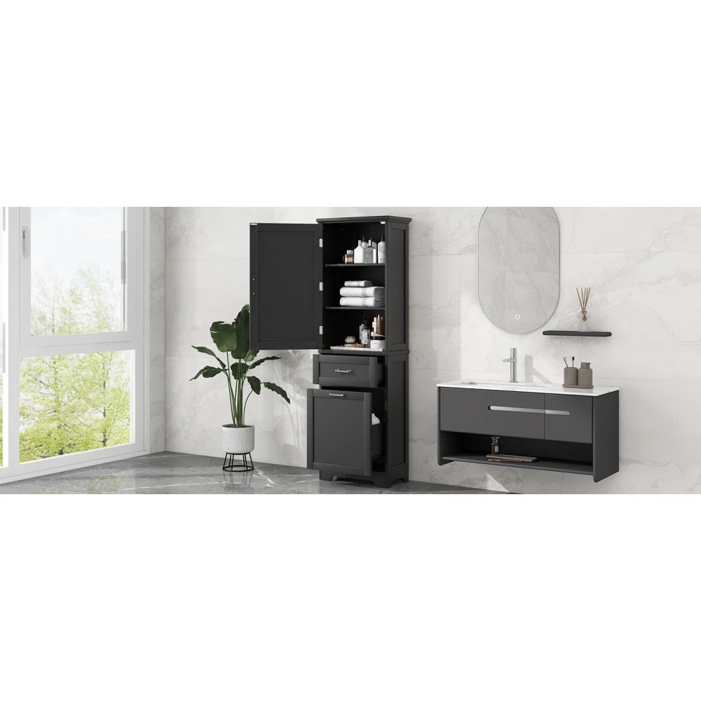 Premium Storage Cabinet: Durable Design Meets Smart Functionality Features Superior Material & Craftsmanship Constructed with high-quality MDF boards and a sleek painted finish, this storage cabinet boasts a water-resistant, smooth surface that’s effortless to clean—ideal for daily use in any room. Equipped with clear acrylic bar handles, the drawers and cabinet door open and close with quiet, seamless ease, enhancing both convenience and aesthetics. Adjustable Shelf for Flexible Storage The cabinet’s first shelf offers 3 adjustable height settings, perfectly accommodating items of varying sizes. Whether you need to store shampoo, towels, body lotion, tissues, or storage baskets, this versatile design adapts to your daily needs with ease. Spacious & Organized Storage Featuring 2 drawers of different sizes and 1 enclosed cabinet, this piece provides ample space to categorize and store essentials, keeping your room clutter-free. The drawers are fitted with smooth slide rails, ensuring quiet, friction-free operation for an upgraded user experience. Anti-Toppling Safety Design Included with the cabinet is an anti-toppling device, which securely attaches the unit to the wall. This critical safety feature prevents accidental tipping, offering peace of mind—especially in households with children or pets. Easy Assembly & Complete Package Assembly is required, but setup is simplified by pre-drilled holes in the MDF boards. The package includes a detailed instruction manual and all necessary hardware, making installation straightforward even for first-time assemblers. Product Specifications Specification Details Color Black Material High-quality MDF board with painted finish Shape Rectangle Total Capacity 100 lbs Adjustable Shelf Yes (3 height settings) Number of Drawers 2 (different sizes, with slide rails) Number of Doors 1 Anti-Toppling Device Included Package Includes Cabinet panels, hardware, instruction manual Assembly Required Yes Country of Origin Vietnam Certifications CARB P2, Forest Stewardship Council (FSC) Designed for both durability and practicality, this storage cabinet combines thoughtful engineering with safety features, making it a reliable addition to any home.