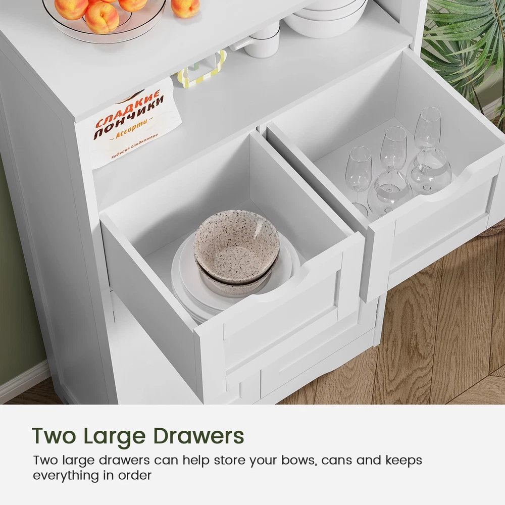 ⭐[Ample Storage for Various Needs] A tabletop, 2 drawers, an open shelf and a small 2-tier cabinet make this storage cabinet for different storage needs. Most decorations, books, and kitchen items can be packed away in an orderly manner, and make space always keep tidy and clean. It is perfect if you need to have more shelves or cupboard to keep extra supplies. ⭐[Customize Storage Space] Our bathroom cabinet features an adjustable internal shelf that can be set to 3 different positions for a cabinet space customized to your needs, providing the flexibility to accommodate items of various heights. ⭐[Where Do You Put It?] In the bathroom for towels? In the kitchen for utensils? Or maybe in the living room for books? This storage cabinet fits effortlessly into any room in your home and adapts to your needs with flair. ⭐[Water-Proof Structure] Constructed of superior P2 MDF board, the storage cabinet can withstand the humidity and prevent moisture, perfect storage for bathroom and kitchen. Environmentally friendly surface ensures no harm and odorless, protecting you and your family from potential dangers ⭐[Assembly Is a Breeze] We updated the instruction to make it more clearly. The instruction is very detailed and easy to read, and even inexperienced people can quickly complete the installation. Feel free to email us if kitchen cabinet has any quality problems, we will send you a new one or give you 100% refund.