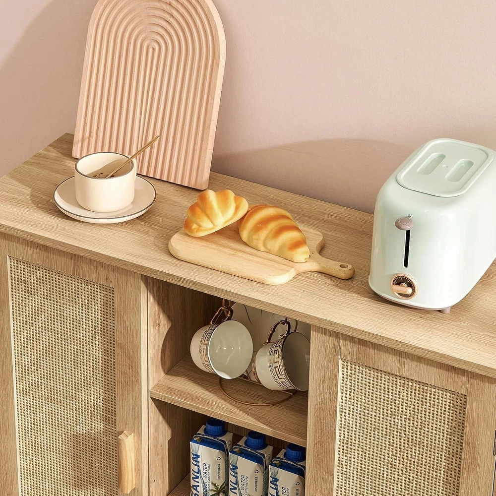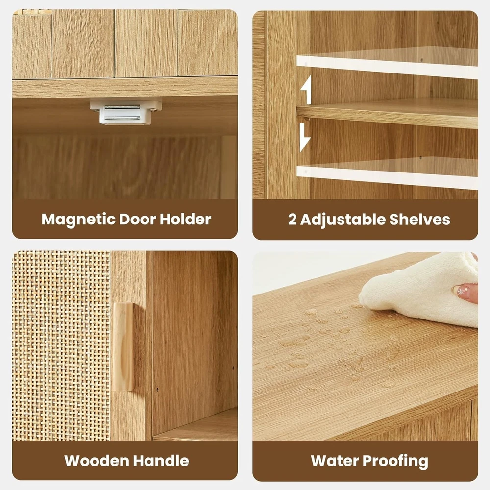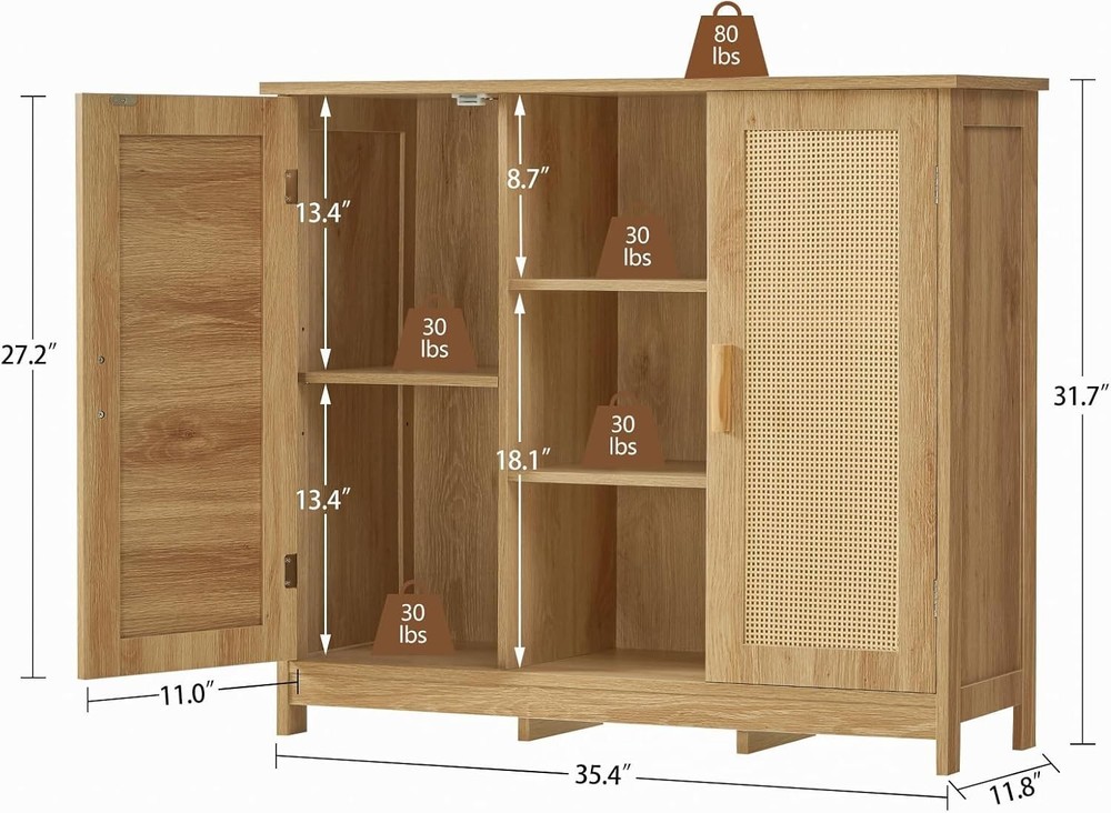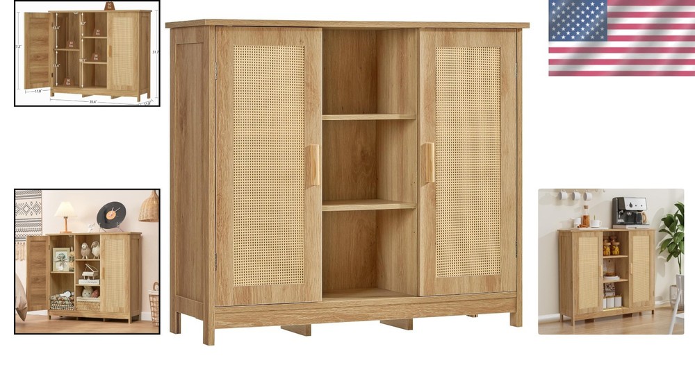 Freestanding Coffee Bar Cabinet with Rattan Doors - 4 Adjustable Storage Shelves ‹ › ‹ › ‹ › ‹ › ‹ › ‹ › ‹ › ‹ › ‹ › ‹ › Freestanding Coffee Bar Cabinet with Rattan Doors - 4 Adjustable Storage Shelves Elevate Your Space with Style and Functionality Transform the heart of your home with our exquisite Freestanding Coffee Bar Cabinet. Featuring an enchanting rattan design, this cabinet not only mesmerizes with its aesthetic charm but also provides practical solutions for your storage needs. Features: Aesthetic & Practical Rattan Design: Two stylish rattan doors add a touch of elegance to your kitchen or dining room while effectively absorbing moisture and heat. Thoughtful Storage Space: Spacious top and four adjustable shelves offer ample room for organizing disposable cups, plates, canned goods, and more, keeping your dining area neat and orderly. Multifunctional Cabinet: Versatile enough to be used as a buffet cabinet, file cabinet, record player stand or entryway cabinet—this piece adapts beautifully to any room in your home. Study & Safety: Constructed from engineered wood, it is stable, non-toxic, and odorless, ensuring a safe living environment for you and your family. The eco-friendly waterproof paint makes it suitable for humid conditions, while an anti-tip kit secures it to the wall for added safety. Satisfaction Service: We prioritize your satisfaction. Should you encounter any issues with your purchase, our responsive customer service team will address your concerns within 24 hours. Why Choose Our Freestanding Coffee Bar Cabinet? Are you looking for a perfect blend of elegance and efficiency? This cabinet is not just a piece of furniture; it’s a sophisticated enhancement to your home that merges decorative appeal with practical functionality. Join the ranks of those who have elevated their living space with this stunning cabinet. Enhance your home aesthetics and stay organized - order your Freestanding Coffee Bar Cabinet today! Shipping Free & Fast Shipping - We offer free shipping to most of the USA with a normal delivery time of 3-7 days. However, due to the current situation, additional delivery time (up to 3 weeks) may be required for some items. Alternative Carriers - We may use alternative carriers (e.g. USPS, FedEx, UPS, etc.) to ensure your package arrives safely and on time. Due to the use of multiple carriers, we are unable to provide a tracking number automatically. Handling Time - Orders are processed and shipped within 1-2 business days of receiving cleared payment. Shipping Restrictions - Shipping to Alaska, Hawaii, Puerto Rico, Guam, and other US territories may incur shipping charges or delivery restrictions. Please contact us before ordering, or your order can be refunded/cancelled. State Restrictions - There may be restrictions based on your state of purchase. For example, certain items may not be shipped to California due to state regulations. Contact for Tracking Updates - If you require tracking updates or have any concerns about the delivery of your order, please feel free to contact us, and we will be happy to assist you. Return 30-Day Hassle-Free Returns - We want you to be completely satisfied with your purchase. If you are not, you can return the item within 30 days of receiving it for a full refund or exchange. Easy Return Process - To start a return, simply contact us and we will provide you with a prepaid return shipping label and detailed instructions. Restocking Fee - There are no restocking fees for returns. However, the buyer is responsible for return shipping costs if the return is not due to a seller's error. Refund Processing Time - Refunds will be processed within 5 business days of receiving the returned item in its condition. Payment We accept all major credit cards, PayPal, and Apple Pay for your convenience. Your payment information is secure and encrypted to ensure a safe and seamless transaction. Please complete your payment within 3 days of purchase to avoid any delays in shipping. Feedback Your feedback is extremely important to us. We strive to provide the best products and customer service possible. If you are satisfied with your purchase, please take a moment to leave us a positive review. If you have any concerns or issues with your order, please contact us before leaving negative feedback. We are committed to resolving any problems and ensuring your satisfaction. Contact Us If you have any questions or concerns, please feel free to out to our customer support team. You can contact us through the eBay messaging system. We are available Monday to Friday, 9:00 am to 5:00 pm EST, and we will do our best to respond to your inquiry within 24 hours. Buy it now and enjoy a pleasant shopping experience! Unit Quantity: 37.6 lb Material: Rattan,Wood,Engineered Wood Mounting: Free Standing,Floor Mount Department: Unisex Baby & Toddler,Kids,Teens,Adults Room: Dining Room,Kitchen,Living Room,Entryway Features: Adjustable Shelves,Moisture Resistant,Weatherproof,Unbreakable Set Includes: Shelves Item Height: Rattan Storage Cabinet Item Length: Rattan Storage Cabinet Item Width: Rattan Storage Cabinet Type: Storage Cabinet Door Style: Flat Panel Color: Natural Number of Shelves: 4 Item Depth: 11.8 in Item Weight: 37.6 lb Handle Material: Wood Style: Modern Number of Drawers: 0 Number of Doors: 2 Number of Items in Set: 1 Finish: Painted Shape: Rectangular
