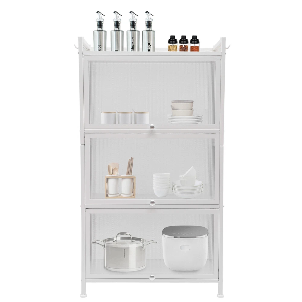 Storage Cabinet Kitchen Pantry Storage Cupboard Freestanding Microwave Rack NEW Description The simple storage cabinet is made of high-quality carbon steel, PC, and E1 eco-friendly panels, providing you with strong load-bearing capacity. The four-layer structure provides more options for sorting your items. The translucent wave pattern cabinet door allows you to understand the location of the items more clearly. It will be your powerful storage assistant. Key Features Easy to Install: The simple structure, enough required parts and an English instruction can help you complete the installation more quickly and accurately. Storage Assistant: The four-layer structure allows you to plan the classification of items more clearly. You can use it to store dishes, bags, shoes, or books to meet almost all your storage needs. User-friendly Design: The flip-top door is easy to open and close. At the same time, the magnetic latch on the door makes it more airtight, insect-proof and rat-proof. Strong Load-bearing Capacity: The sturdy quadrilateral structure and high-quality carbon steel frame make it have a strong load-bearing capacity (maximum 44.09 lbs for a single layer). You can store heavy objects in it with confidence. High-quality Material: This product is made of high-hardness carbon steel, PC, and E1 eco-friendly plates. The performance of high-temperature resistance , water resistance, and scratch resistance can extend the service life of the product. Large Capacity: Three layers of storage (23.6*12.6*11.8 inch per layer) and 1 layer of open shelf make it possible to store many objects, such as microwave ovens, ovens, etc. Good Air Permeability: The removable back panel and grid side panels provide good air permeability for the storage cabinet and keep the interior items away from odor. Stylish Appearance: The simple lines and classic white can make it a timeless decoration for rooms with different decoration styles, making your room more modern and beautiful. Easy to Clean: The smooth baked paint surface is stain resistant and easy to clean. All you need to do is wipe it gently with a damp rag to clean it. Details 4 Hooks: The four hooks provide more choices and convenience for your storage. You can hang towels, scarves, or other kitchen utensils on them. Semi-transparent Cabinet Door: The wavy PC semi-transparent cabinet door allows you to understand the location of items more clearly, providing more convenience for your search. Safety Guardrail : The top shelf with a safety guardrail provides higher security for the placement of items. Adjustable Foot Pads: Adjustable foot pads provide balance and strong stability on uneven ground. You can easily adjust their height by rotating them. Application This product can be used as a cabinet, bookcase, shoe rack, snack rack, flower rack, etc., and is applicable to the kitchen, dining room, living room, study, etc. Specification Material: Carbon Steel, PC, E1 Eco-friendly Panel Process: Baking Paint Color: White Number of Layers: 4 Layers Model: OGJ-ZWJ055 Shape: Rectangular Installation Method: Floor-mounted Door Type: Flip-top Type Assembly Required: Yes Maximum Loading Capacity ( Single Layer ): 20kg/44.09lbs Single Layer Height of Shelf: 30cm/11.8in Product Size: 60*32*109.5cm/ 23.6*12.6*43.1 in Package Included 1 * Storage Cabinet 1 * English Manual All Accessories for Installation Notes It is recommended to place heavy objects evenly to achieve a balanced load-bearing effect. Please allow the slight color difference caused by the shooting light and the 1-3 cm error due to manual measurement, and make sure you do not mind before ordering. Payment Delivery details Terms of sales About us Contact us Payment We accept ebay payment 。 Fees such as import duties, taxes are not included in the item price or shipping costs. These charges are the buyer's responsibility. Delivery details Shipping: 2-9 working days to: USA Terms of sales We maintain high standards of excellence and strive for hundred percent customer satisfaction. Feedback is very important to us. We hope that you contact us immediately before you give neutral or negative feedback, so that we can address your concerns. It is impossible to address issues if we do not know about them! About us Your satis faction is our ultimate goal. We work hard to earn your trust and future business. Our certified technicians have tested each item before shipping. The unit comes with 1 year limited warranty on all manufacturing defects. a) If you receive a defective item, you may return it or ask for a discount. Please contact us within 14 days after you receive the package. b) What you returned must be intact and in its original packaging as re? u. Customer is responsible for shipping costs of the returned item. c) We will cover the cost of shipping back t with the shipping rate indicated in the registration page. We will send you a new unit or refund the full payment you paid. Thank you. Contact us Business Hour Business Hour: Monday To Friday: 8:30 AM to 5:00 PM (Beijing China time) Due to time zones, our reply to your questions may not be immediately. But within above working time, we will reply your email within 24 hours. If it's non-workdays, please kindly be patient and wait till Monday. Please contact us with ebay message. Please feel free to contact us if you have any questions. Monday To Friday: 8:30 AM to 5:00 PM (Beijing China time) Due to time zones, our reply to your questions may not be immediately. But within above working time, we will reply your email within 24 hours. If it's non-workdays, please kindly be patient and wait till Monday. Please contact us with ebay message. Please feel free to contact us if you have any questions. Please Note Shipment from local warehouse in the US Process Baking Paint Number of Layers 4 Layers Installation Method Floor-mounted Door Type Flip-top Type Maximum Loading Capacity ( Single Layer ) 20kg/44.09lbs Single Layer Height of Shelf 30cm/11.8in Brand 