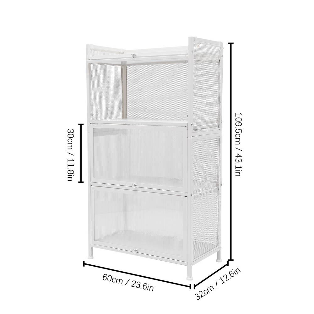 Storage Cabinet Kitchen Pantry Storage Cupboard Freestanding Microwave Rack NEW Description The simple storage cabinet is made of high-quality carbon steel, PC, and E1 eco-friendly panels, providing you with strong load-bearing capacity. The four-layer structure provides more options for sorting your items. The translucent wave pattern cabinet door allows you to understand the location of the items more clearly. It will be your powerful storage assistant. Key Features Easy to Install: The simple structure, enough required parts and an English instruction can help you complete the installation more quickly and accurately. Storage Assistant: The four-layer structure allows you to plan the classification of items more clearly. You can use it to store dishes, bags, shoes, or books to meet almost all your storage needs. User-friendly Design: The flip-top door is easy to open and close. At the same time, the magnetic latch on the door makes it more airtight, insect-proof and rat-proof. Strong Load-bearing Capacity: The sturdy quadrilateral structure and high-quality carbon steel frame make it have a strong load-bearing capacity (maximum 44.09 lbs for a single layer). You can store heavy objects in it with confidence. High-quality Material: This product is made of high-hardness carbon steel, PC, and E1 eco-friendly plates. The performance of high-temperature resistance , water resistance, and scratch resistance can extend the service life of the product. Large Capacity: Three layers of storage (23.6*12.6*11.8 inch per layer) and 1 layer of open shelf make it possible to store many objects, such as microwave ovens, ovens, etc. Good Air Permeability: The removable back panel and grid side panels provide good air permeability for the storage cabinet and keep the interior items away from odor. Stylish Appearance: The simple lines and classic white can make it a timeless decoration for rooms with different decoration styles, making your room more modern and beautiful. Easy to Clean: The smooth baked paint surface is stain resistant and easy to clean. All you need to do is wipe it gently with a damp rag to clean it. Details 4 Hooks: The four hooks provide more choices and convenience for your storage. You can hang towels, scarves, or other kitchen utensils on them. Semi-transparent Cabinet Door: The wavy PC semi-transparent cabinet door allows you to understand the location of items more clearly, providing more convenience for your search. Safety Guardrail : The top shelf with a safety guardrail provides higher security for the placement of items. Adjustable Foot Pads: Adjustable foot pads provide balance and strong stability on uneven ground. You can easily adjust their height by rotating them. Application This product can be used as a cabinet, bookcase, shoe rack, snack rack, flower rack, etc., and is applicable to the kitchen, dining room, living room, study, etc. Specification Material: Carbon Steel, PC, E1 Eco-friendly Panel Process: Baking Paint Color: White Number of Layers: 4 Layers Model: OGJ-ZWJ055 Shape: Rectangular Installation Method: Floor-mounted Door Type: Flip-top Type Assembly Required: Yes Maximum Loading Capacity ( Single Layer ): 20kg/44.09lbs Single Layer Height of Shelf: 30cm/11.8in Product Size: 60*32*109.5cm/ 23.6*12.6*43.1 in Package Included 1 * Storage Cabinet 1 * English Manual All Accessories for Installation Notes It is recommended to place heavy objects evenly to achieve a balanced load-bearing effect. Please allow the slight color difference caused by the shooting light and the 1-3 cm error due to manual measurement, and make sure you do not mind before ordering. Payment Delivery details Terms of sales About us Contact us Payment We accept ebay payment 。 Fees such as import duties, taxes are not included in the item price or shipping costs. These charges are the buyer's responsibility. Delivery details Shipping: 2-9 working days to: USA Terms of sales We maintain high standards of excellence and strive for hundred percent customer satisfaction. Feedback is very important to us. We hope that you contact us immediately before you give neutral or negative feedback, so that we can address your concerns. It is impossible to address issues if we do not know about them! About us Your satis faction is our ultimate goal. We work hard to earn your trust and future business. Our certified technicians have tested each item before shipping. The unit comes with 1 year limited warranty on all manufacturing defects. a) If you receive a defective item, you may return it or ask for a discount. Please contact us within 14 days after you receive the package. b) What you returned must be intact and in its original packaging as re? u. Customer is responsible for shipping costs of the returned item. c) We will cover the cost of shipping back t with the shipping rate indicated in the registration page. We will send you a new unit or refund the full payment you paid. Thank you. Contact us Business Hour Business Hour: Monday To Friday: 8:30 AM to 5:00 PM (Beijing China time) Due to time zones, our reply to your questions may not be immediately. But within above working time, we will reply your email within 24 hours. If it's non-workdays, please kindly be patient and wait till Monday. Please contact us with ebay message. Please feel free to contact us if you have any questions. Monday To Friday: 8:30 AM to 5:00 PM (Beijing China time) Due to time zones, our reply to your questions may not be immediately. But within above working time, we will reply your email within 24 hours. If it's non-workdays, please kindly be patient and wait till Monday. Please contact us with ebay message. Please feel free to contact us if you have any questions. On Jul 22, 2025 at 19:58:36 PDT, seller added the following information: