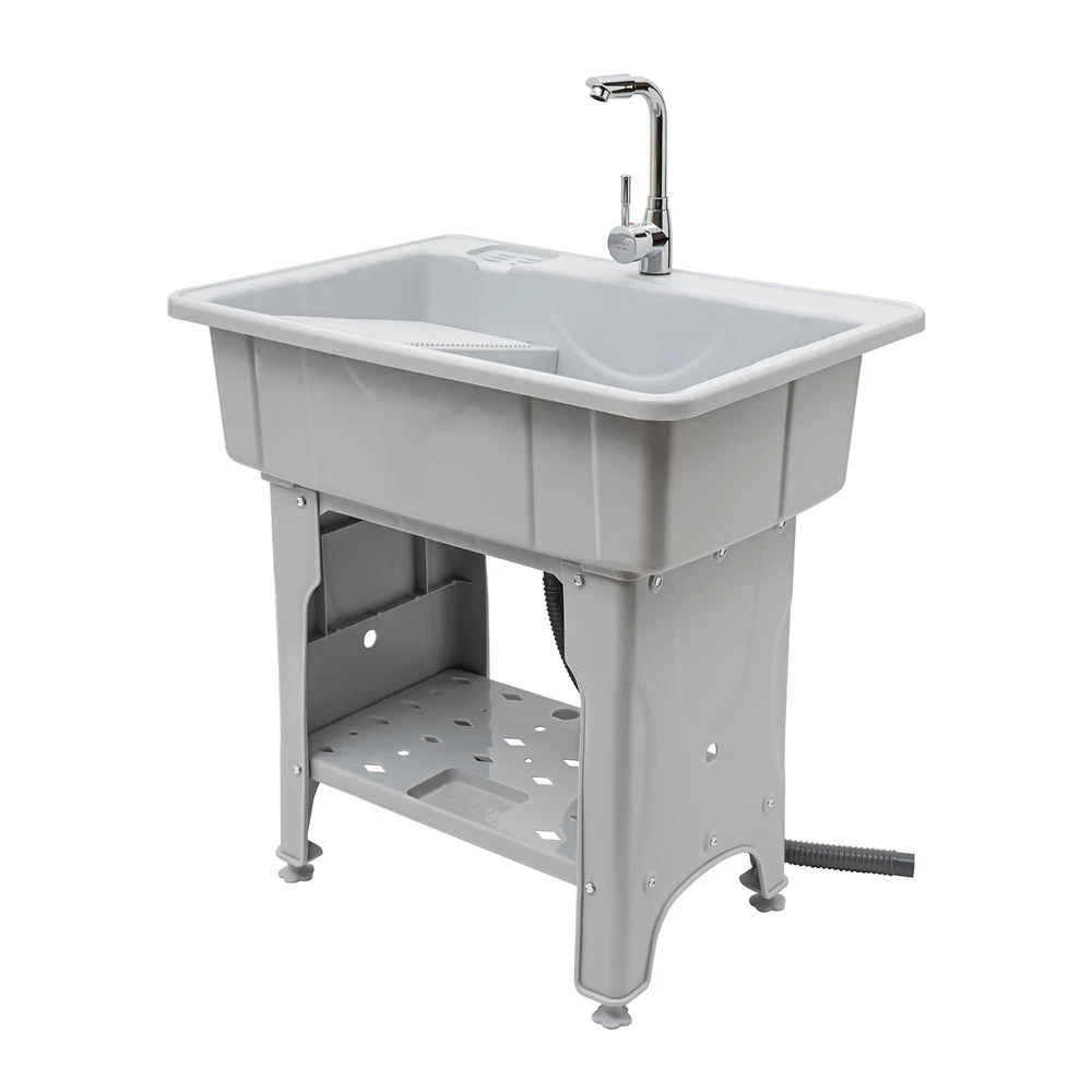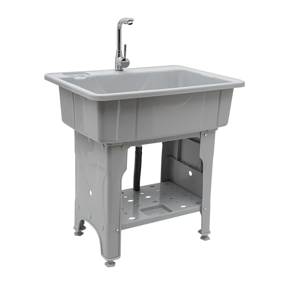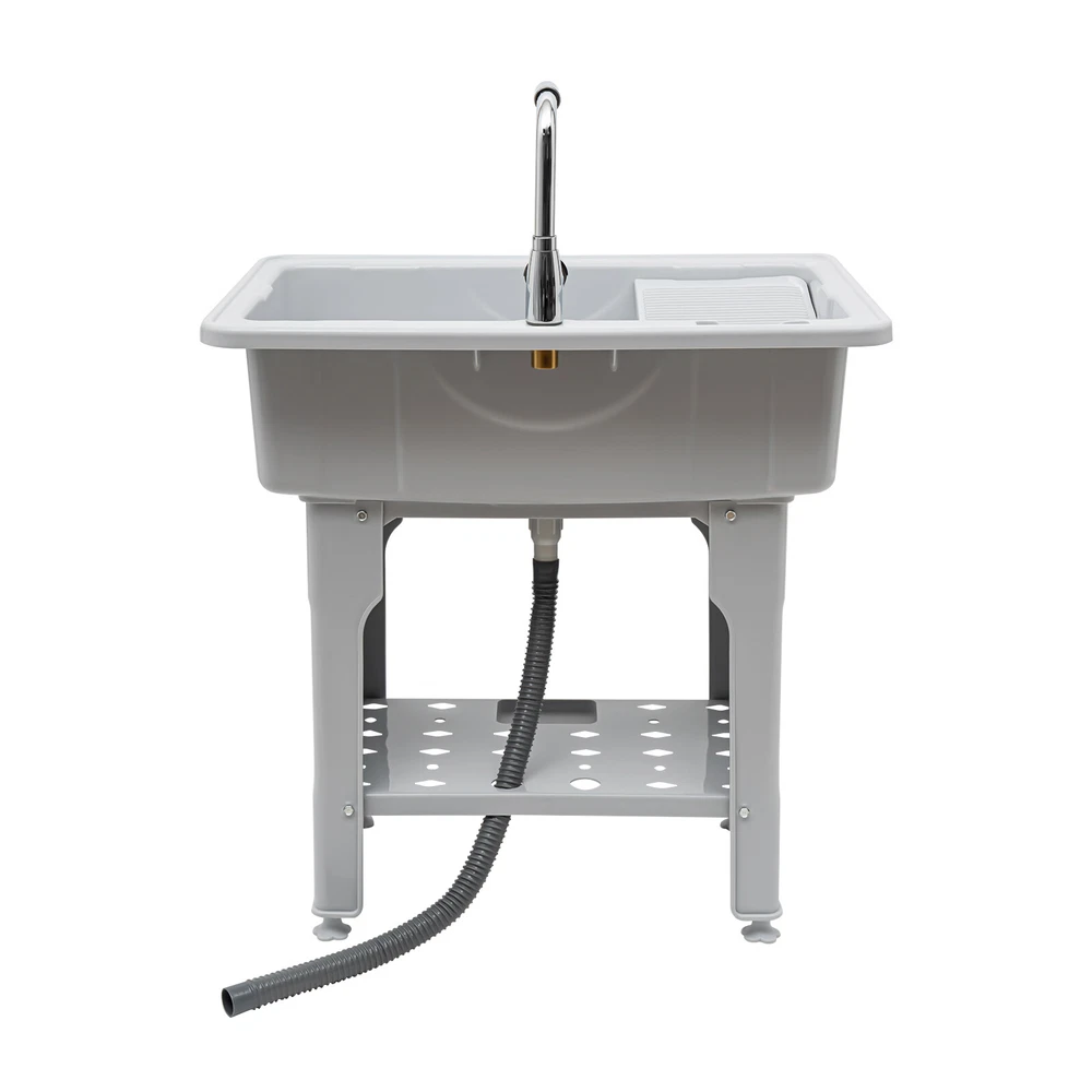 Freestanding Kitchen Sink Commercial Laundry & Utility Room Sinks w/ Faucet Gray