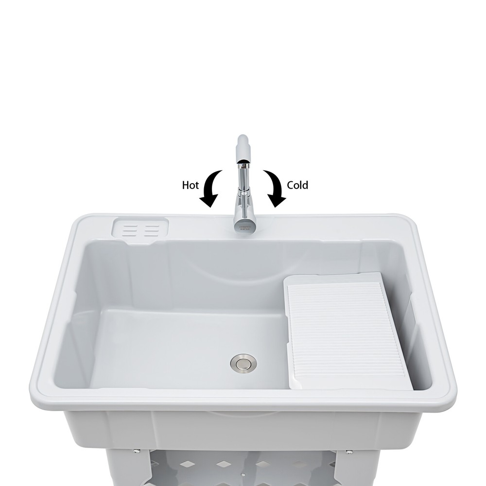 DescriptionThis freestanding plastic laundry sink redefines your washing experience with its excellent quality, user-friendly design, and extraordinary practicality. Choosing it means choosing a peaceful, comfortable, and convenient way to transform heavy household chores into a relaxed and enjoyable life experience. Hurry up and make the laundry sink an indispensable washing companion in your home!Key FeaturesEasy to Install: It adopts a hole-free installation design and butterfly screw connection, so you only need to follow the simple steps shown in the instructions and install it quickly. It can be put into use soon.Strong Support: With a reinforcing ribs design on its bottom, it has a strong loading capacity (154lbs), ensuring stability and reliability in various application scen Freestanding Kitchen Sink Commercial Laundry & Utility Room Sinks w/ Faucet Gray Description This freestanding plastic laundry sink redefines your washing experience with its excellent quality, user-friendly design, and extraordinary practicality. Choosing it means choosing a peaceful, comfortable, and convenient way to transform heavy household chores into a relaxed and enjoyable life experience. Hurry up and make the laundry sink an indispensable washing companion in your home! Key Features Easy to Install: It adopts a hole-free installation design and butterfly screw connection, so you only need to follow the simple steps shown in the instructions and install it quickly. It can be put into use soon. Strong Support: With a reinforcing ribs design on its bottom, it has a strong loading capacity (154lbs), ensuring stability and reliability in various application scenarios. Washing Expert: Its enlarged storage space at the bottom, thickened movable washboard, and 360 ° rotating faucet comprehensively improve washing efficiency, convenience, and comfort. It is the ideal choice to meet the diverse washing needs of modern households. Premium Material: The product is mainly made of premium plastic material, which is cold and sun resistant, and can be used both indoors and outdoors, meeting your various needs. User-friendly Design: Its height (31.5 in) has been carefully calculated to help you easily wash and rub clothes without excessive bending, effectively reducing the burden on the waist and further improving the comfort of use. Easy to Clean: The plastic surface is smooth and does not easily adhere dirt. It only needs a simple wipe to restore its smoothness as new, saving time and effort. Safe to Use: The water-blocking edges of the sink adopt a round design, which can protect your hands and prevent overflow, avoiding safety hazards caused by wet and slippery ground. Satisfaction Guarantee: No matter what problem you encounter or have any questions, please contact us. We will reply and solve the problem for you as soon as possible. Details Soap Grooves: The upper soap groove has anti-slip patterns to effectively fix the soap. The lower soap groove has a hollow design to filter out residual moisture. Pipe Fixing Slot: It can firmly fix the water pipe to the partition, avoiding displacement due to water flow during the laundry process. Hot & Cold Faucet: It allows you to freely adjust the water temperature according to the season and personal preferences, making your laundry process more comfortable. Application This product is suitable for laundry, bathrooms, sundry rooms, garages, basements, balconies, courtyards, gardens, etc. It can be used as a cleaning sink, pet bath, or storage rack. Specification Material: Plastic, Alloy, Aluminum, Steel Color: Grey Style: ‎Modern Assembly Required: Yes Installation Type: Freestanding Shape: ‎Rectangular Loading Capacity: Max. 70kg/154lbs Rotatable Faucet: 360° Washboard Size: 42.5*23cm/16.7*9in Sink Inner Size: 71*42.5*22cm/28*16.7*8.7in Sink Outer Size: 78.7*56cm/31*22.1in Shelf Size: 35*56.5*38cm/13.8*22.2*15in Product Height: 80cm/31.5in Faucet Height: 25cm/9.8in Bottom Size: 59*38.5cm/23.2*15.2in Adjustable Foot Range: 0-1.5cm/0-0.6in Soap Groove Sizes: 12.5*7cm/4.9*2.8in (Upper); 13.5*9.5cm/5.3*3.7in (Lower) Water Pipe Length: 59.5cm/23.4in Drain Pipe Length: 80cm/31.5in Water Pipe Diameter: 2cm/0.8in Drain Pipe Diameter: 3cm/1.2in Package Size: 78*57.7*29cm/30.7*22.7*11.4in Net Weight: 8.2kg/18lbs Gross Weight: 9.45kg/20.8lbs Package Included 1* Freestanding Plastic Laundry Sink 1* Washboard 1* Hot and Cold Faucet 2* Water Pipes 2* Valves 1* Drain Pipe 4* Feet 1* English Manual All Accessories for Installation Notes Please allow the slight color difference caused by the shooting light and 1-3cm error due to manual measurement, and make sure you do not mind before ordering. Payment Delivery details Terms of sales About us Contact us Payment We accept ebay payment 。 Fees such as import duties, taxes are not included in the item price or shipping costs. These charges are the buyer's responsibility. Delivery details Shipping: 2-9 working days to: USA Terms of sales We maintain high standards of excellence and strive for hundred percent customer satisfaction. Feedback is very important to us. We hope that you contact us immediately before you give neutral or negative feedback, so that we can address your concerns. It is impossible to address issues if we do not know about them! About us Your satis faction is our ultimate goal. We work hard to earn your trust and future business. Our certified technicians have tested each item before shipping. The unit comes with 1 year limited warranty on all manufacturing defects. a) If you receive a defective item, you may return it or ask for a discount. Please contact us within 14 days after you receive the package. b) What you returned must be intact and in its original packaging as re? u. Customer is responsible for shipping costs of the returned item. c) We will cover the cost of shipping back t with the shipping rate indicated in the registration page. We will send you a new unit or refund the full payment you paid. Th