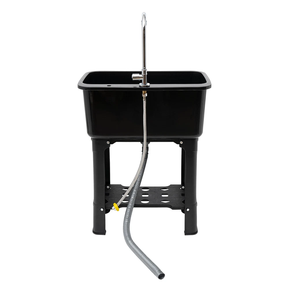 This freestanding utility sink is a game-changer! The deep basin minimizes splashes, and the 360° rotating faucet makes cleaning a breeze. The sturdy PP material and built-in storage shelf add both durability and convenience. Super easy to install—no hassle at all. Perfect for laundry rooms, garages, or even small kitchens. It looks sleek and modern while being incredibly functional. Highly recommend for anyone needing extra utility space!