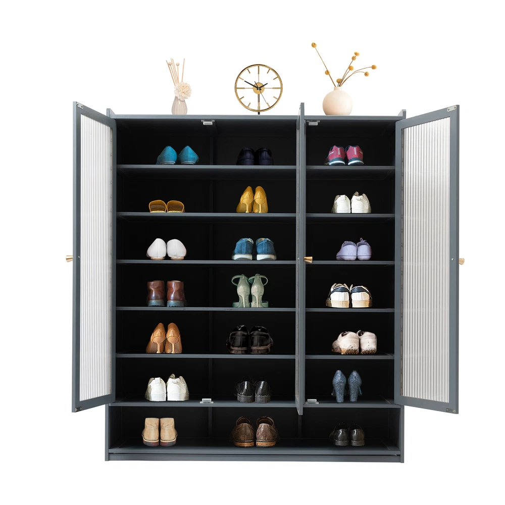 Number of Cabinet Doors: 3 Style: Modern gtin13: Does not apply Brand: Unbranded Item Length: 91cm Number of Tiers: 8 Capacity: 21-25 pairs Item Width: 32cm Assembly Required: Yes Mounting: Free Standing Country/Region of Manufacture: China Features: Strong Bearing Capacity Maximum Single Tier Load: About 15kg/33.07lbs Type: Shoe Cabinet Color: Haze Blue Item Height: 107cm Product Size: 91*32*107 cm/ 35.8*12.6*42.1 in Material: MDF, Bamboo, Acrylic, Plastic UPC: Does not apply Shape: Rectangular Number of Shelves: 1 Please Note: Shipment from local warehouse in the US