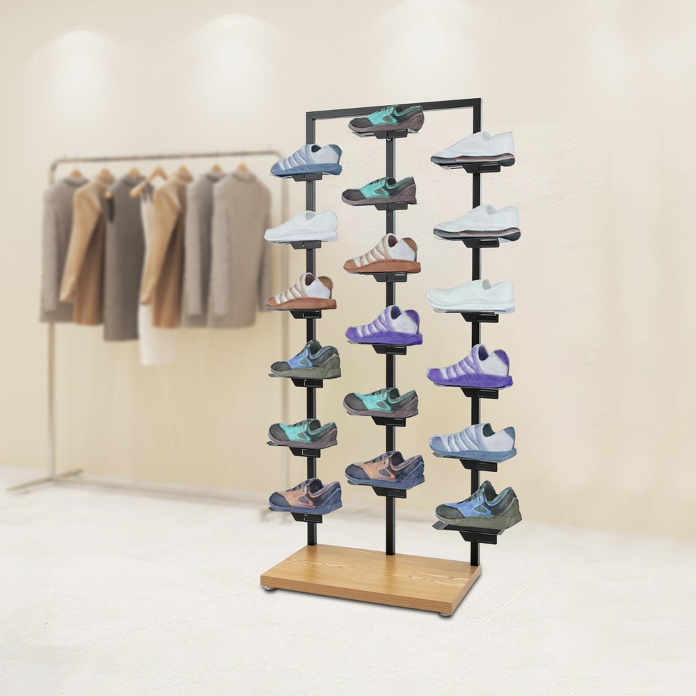 Specification Material: Ashtree, Iron Technics: Spraying, High-temperature Baking Paint Color: Black, Wood Style: Modern Number of Compartments: 18 Mount Type: Floorstanding Assembly Required: Yes Display Side: Single Sided Overall Load Capacity: 11kg/24.25lbs Square Tube Size: 25*25mm/0.98*0.98in Base Size: 60*35cm/23.62*13.78in Product Size (L*H): 80*150cm/31.5*59.06in Package Size: 150*65*8cm/59.06*25.59*3.15in Gross Weight: 10kg/22.05lbs Net Weight: 9.5kg/20.94lbs Package Included 1* Shoe Rack 1* Chinese Installation Instruction All Accessories for Use Free Standing Shoe Rack Shop Shoe Display Rack Shoe Display Shelf for 18 Pairs Application It can hold up to 9 pairs of shoes, suitable for displaying any shoes, such as sneakers, basketball shoes, flats flip-flop sandals (all excluded), etc. It is suitable for shoe stores, shopping malls, shoe exhibition halls, bedrooms, entrances, corridors, dressing rooms, and other places. Specification Material: Ashtree, Iron Technics: Spraying, High-temperature Baking Paint Color: Black, Wood Style: Modern Number of Compartments: 18 Mount Type: Floorstanding Assembly Required: Yes Display Side: Single Sided Overall Load Capacity: 11kg/24.25lbs Square Tube Size: 25*25mm/0.98*0.98in Base Size: 60*35cm/23.62*13.78in Product Size (L*H): 80*150cm/31.5*59.06in Package Size: 150*65*8cm/59.06*25.59*3.15in Gross Weight: 10kg/22.05lbs Net Weight: 9.5kg/20.94lbs Package Included 1* Shoe Rack 1* Chinese Installation Instruction All Accessories for Use Description This exquisite three-column single-sided shoe rack features a modern minimalist design that harmoniously blends in with various styles. It is not only a practical storage solution, but also a stylish display rack to show your taste. It is suitable for displaying in shoe store boutiques, specialty stores, apparel company showrooms, and other stores to make your shoes more prominent and beautiful and increase your sales, or you can place it at home to display your collection of shoes. Key Features Robust and Durable: The high-quality iron frame, ashtree base, spraying, and high-temperature baking varnish processes make it sturdy, wear-resistant, not easy to damage, and still maintains its excellent performance after a long time of use. Space Optimization: It can display or store 9 pairs of shoes at the same time, which meets most of the display or storage needs. The three-column design maximizes the use of every inch of space, especially suitable for limited space placement in stores or homes. Outstanding Display Effect: The single-sided open design allows customers or users to clearly and intuitively see all the shoes on display, which makes it easy to select and maintain a tidy shoe rack at the same time. Easy to Access: Each shoe holder is well-designed, making it easy to access and place the shoes, which greatly enhances the experience of using it. Stable Construction: The 0.98*0.98-inch iron square tubes and thick ashtree base and strong screw fixation ensure that the shoe rack can hold 24.25 lbs as a whole, so you can use it with peace of mind. Ventilated and Breathable: An open design helps air circulation between shoes and reduces odor buildup. Simple Assembly: Simple structure and complete accessories make it easy for you to assemble it by yourself without professional tools. Aesthetically Pleasing: The versatile black color scheme and minimalist shape not only display the shoes effectively but also serve as part of the interior decoration to enhance the aesthetics of the environment. Customer Service: We aim to provide quality products and services. If you have any problems, please feel free to contact us. We will reply and solve the problem for you as soon as possible. Details 4 Non-slip Feet: You can adjust the 4 non-slip feet when the ground is uneven to maintain a more stable support and placement effect. Thoughtful Shoe Holders: The sponge pads can better protect your shoes, while the holders have a curved design to better support your shoes and prevent them from accidentally falling off. Notes Please check the style and size before purchasing. Please follow the diagram for installation. Please allow the slight color difference caused by the shooting light and 1-3cm error due to manual measurement and make sure you do not mind before ordering. Payment Delivery details Terms of sales About us Contact us Payment We accept ebay payment 。 Fees such as import duties, taxes are not included in the item price or shipping costs. These charges are the buyer's responsibility. Delivery details Shipping: 2-9 working days to: USA Terms of sales We maintain high standards of excellence and strive for hundred percent customer satisfaction. Feedback is very important to us. We hope that you contact us immediately before you give neutral or negative feedback, so that we can address your concerns. It is impossible to address issues if we do not know about them! About us Your satis faction is our ultimate goal. We work hard to earn your trust and future business. Our certified technicians have tested each item before shipping. The unit comes with 1 year limited warranty on all manufacturing defects. a) If you receive a defective item, you may return it or ask for a discount. Please contact us within 14 days after you receive the package. b) What you returned must be intact and in its original packaging as re? u. Customer is responsible for shipping costs of the returned item. c) We will cover the cost of shipping back t with the shipping rate indicated in the registration page. We will send you a new unit or refund the full payment you paid. Thank you. Contact us Business Hour Business Hour: Monday To Friday: 8:30 AM to 5:00 PM (Beijing China time) Due to time zones, our reply to your questions may not be immediately. But within above working time, we will reply your email within 24 hours. If it's non-workdays, please kindly be patient and wait till Monday. Please contact us with ebay message. Please fe