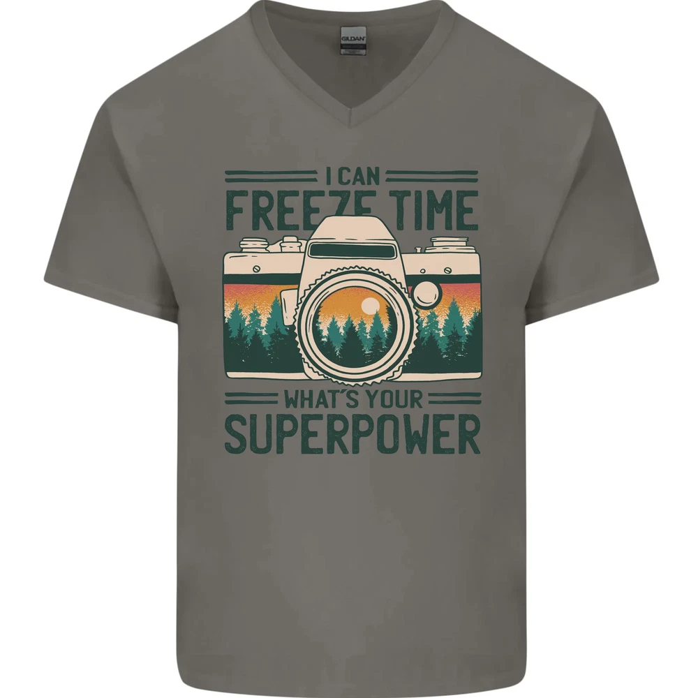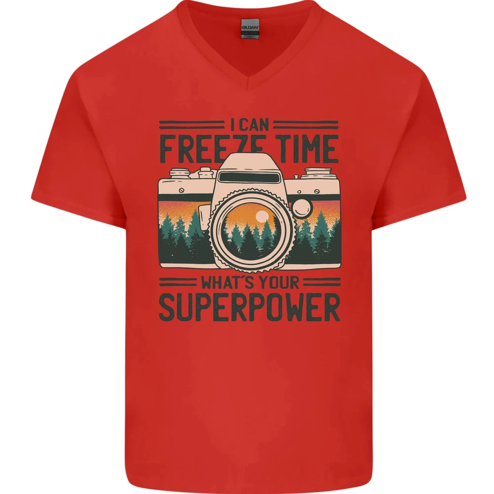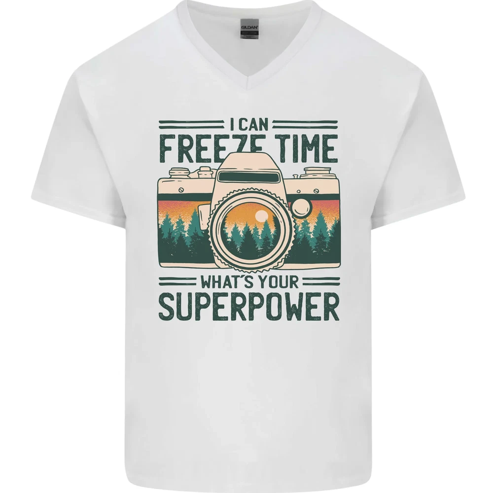 Freeze Time Photography Photographer Mens V-Neck Cotton T-Shirt