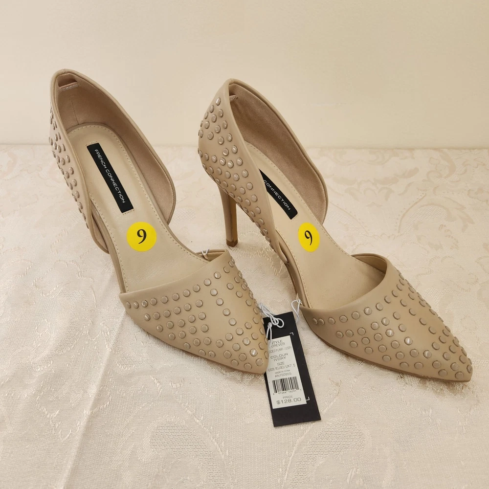 French Connection Shoes Womens 9 Forever Camel Vegan Leather Pointed Toe Pumps - NEW with Tags - All Season, Career, Business, Church, Special Occasions, Evening, Dress, Night Out, Lunch Date, Cocktail Party, Classic, Classy, Stylish and Modern - Returns acceptable within 30 days of purchase unworn, in original condition - Check out my E-bay Store. Lots of Choices Available. Reduced shipping for 2 or more items. Let me know before you pay so I can send you an invoice to discount the shipping