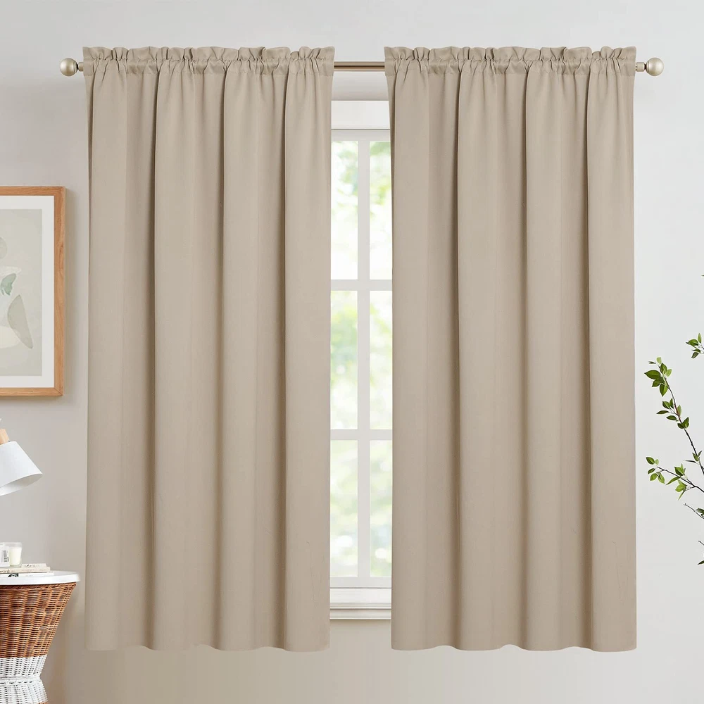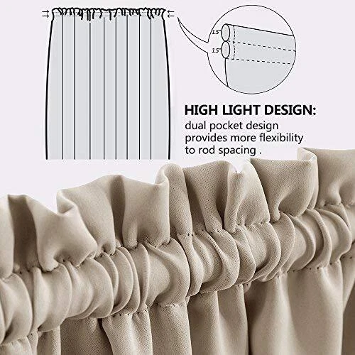 Room Darkening Curtain Panel Perfectly Matches Your Bedroom Window or French Door. Privacy&Sunshine Relax: energy saving thermal insulated curtain panel minimize the unwanted light by day and will stop the outside world from creeping into your private moments. Enjoy The Life Space with Families And Friends To The Utmost. Stylish Performance:fresh, simple style and high grade quality is reflected in the details. Your furniture, floors and artwork will be protected from fading by blocking UV rays through your South-Facing door. Easy to install and hang. Care Instruction: All the door panels are thread trimed and pre-ironed. You can wash them in cold water by machine and tumble dry in low heat. Machine washable, Wrinkles free. PLEASE NOTE: Darker colors have a better blackout effect (blackout effect from 85% to 99%). Due to differences in computer monitors, there can be variation in color between the actual curtains and your screen. Ready Made: Package contains 2 panels that measures 52" wide x 40" length each. Quality Fabric: Light Reducing Triple Weave Fabric, Same Color on Both Sides Elegant Tailoring: Fresh Style Panels are made by Professional Tailor, which perfectly match your lovely Patio door or Bedroom Window. One-Stop Services: Thread trimmed and wrinkle free. Easy to hang with the curtain rod. Easy Care: Machine washable in cold water, tumble dry.