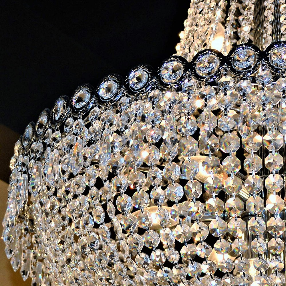 Key Features Great Durability: The frame of this crystal chandelier is made of solid brass, which is more durable and will last for a long time. Elegant Design: With 30% full lead octagonal crystals finely cut and beaded, this elegant crystal chandelier will bring sparkle and glamour to any room. Decoration and Illumination: Lighting is the chandelier's original function. Meanwhile, its modern and simple design can be used to decorate any environment to bring elegance and magnificence. Easy to Install: You can easily install all bead strings because of its simple structure. All bead strings can be installed in the same way. French Empire Crystal Chandelier Modern Hanging Lamp Pendant Light Banquet Hall Description SKU: HG-HCXLST-3488-US Description The crystal chandelier is made of solid brass, which is more durable and can last for a long period. With 30% full lead octagonal crystals finely cut and beaded, this elegant crystal lamp will bring sparkle and glamour to any room. It is widely used in hotel, banquet hall, living room, dining room, or foyer for decoration and illumination. Key Features Great Durability: The frame of this crystal chandelier is made of solid brass, which is more durable and will last for a long time. Elegant Design: With 30% full lead octagonal crystals finely cut and beaded, this elegant crystal chandelier will bring sparkle and glamour to any room. Decoration and Illumination: Lighting is the chandelier's original function. Meanwhile, its modern and simple design can be used to decorate any environment to bring elegance and magnificence. Easy to Install: You can easily install all bead strings because of its simple structure. All bead strings can be installed in the same way. Wide Application: It is widely used in hotel, banquet hall, living room, dining room, or foyer for decoration and illumination. Easy to Clean: Y ou can easily clean it in terms of its smooth surface because it has experienced polishing treatment. High Applicability: The crystal chandelier can adapt to incandescent, LED, halogen, or CFL bulbs with E12 lamp head , which can meet your different requirements for light. Customer Service: If you have any questions, please feel free to contact us, we are willing to answer your questions. Details Adjustable Chain : The chain of the crystal chandelier can be adjusted freely according to the height of different rooms or your different requirements. This chain can be adjusted to a maximum of 72 inches. Staggered and Uneven : The junctions of the different trending crystal chains are connected by larger crystals, which can add layers to the chandelier. Application It is widely used in hotel, banquet hall, living room, dining room, or foyer for decoration and illumination. Specification Diameter: 50cm/20inch Height: 70cm/28inch Adjustable Chain: 182.88cm/72inch Installation 1. This chandelier needs basic assembly. Professional would be highly recommended. 2. If you have any problems, please feel free to contact us. We will reply and solve the problem for you as soon as possible. Package Included 1 X Crystal Chandelier All Accessories for Assembly Notes 1. You should use 12 E12 base bulbs up to 40 watts (not included in the package), or you can use incandescent, LED, halogen, or CFL bulbs. 2. Please make sure the light is securely supported and is disconnected from power when installing. 3. Installing the light bulbs before hanging the crystals can make the installation easier. 4. Please allow the slight color difference caused by the shooting light and 1-3 cm error due to manual measurement, and make sure you do not mind before ordering. Payment Delivery details Terms of sales About us Contact us Payment We accept ebay payment 。 Fees such as import duties, taxes are not included in the item price or shipping costs. These charges are the buyer's responsibility. Delivery details Shipping: 2-9 working days to: USA Terms of sales We maintain high standards of excellence and strive for hundred percent customer satisfaction. Feedback is very important to us. We hope that you contact us immediately before you give neutral or negative feedback, so that we can address your concerns. It is impossible to address issues if we do not know about them! About us Your satis faction is our ultimate goal. We work hard to earn your trust and future business. Our certified technicians have tested each item before shipping. The unit comes with 1 year limited warranty on all manufacturing defects. a) If you receive a defective item, you may return it or ask for a discount. Please contact us within 14 days after you receive the package. b) What you returned must be intact and in its original packaging as re? u. Customer is responsible for shipping costs of the returned item. c) We will cover the cost of shipping back t with the shipping rate indicated in the registration page. We will send you a new unit or refund the full payment you paid. Thank you. Contact us Business Hour Business Hour: Monday To Friday: 8:30 AM to 5:00 PM (Beijing China time) Due to time zones, our reply to your questions may not be immediately. But within above working time, we will reply your email within 24 hours. If it's non-workdays, please kindly be patient and wait till Monday. Please contact us with ebay message. Please feel free to contact us if you have any questions. Monday To Friday: 8:30 AM to 5:00 PM (Beijing China time) Due to time zones, our reply to your questions may not be immediately. But within above working time, we will reply your email within 24 hours. If it's non-workdays, please kindly be patient and wait till Monday. Please contact us with ebay message. Please feel free to contact us if you have any questions. Country/Region of Manufacture Unknown ❤Highlights❤ ❤Premium Material❤Long Service Life❤Quality Service❤ 🔥Feature🔥 🔥High Performance🔥High Safety🔥Great for DIY🔥 ★Features★ ★★★Reliable Quality★★★Easy installation★★★Good 
