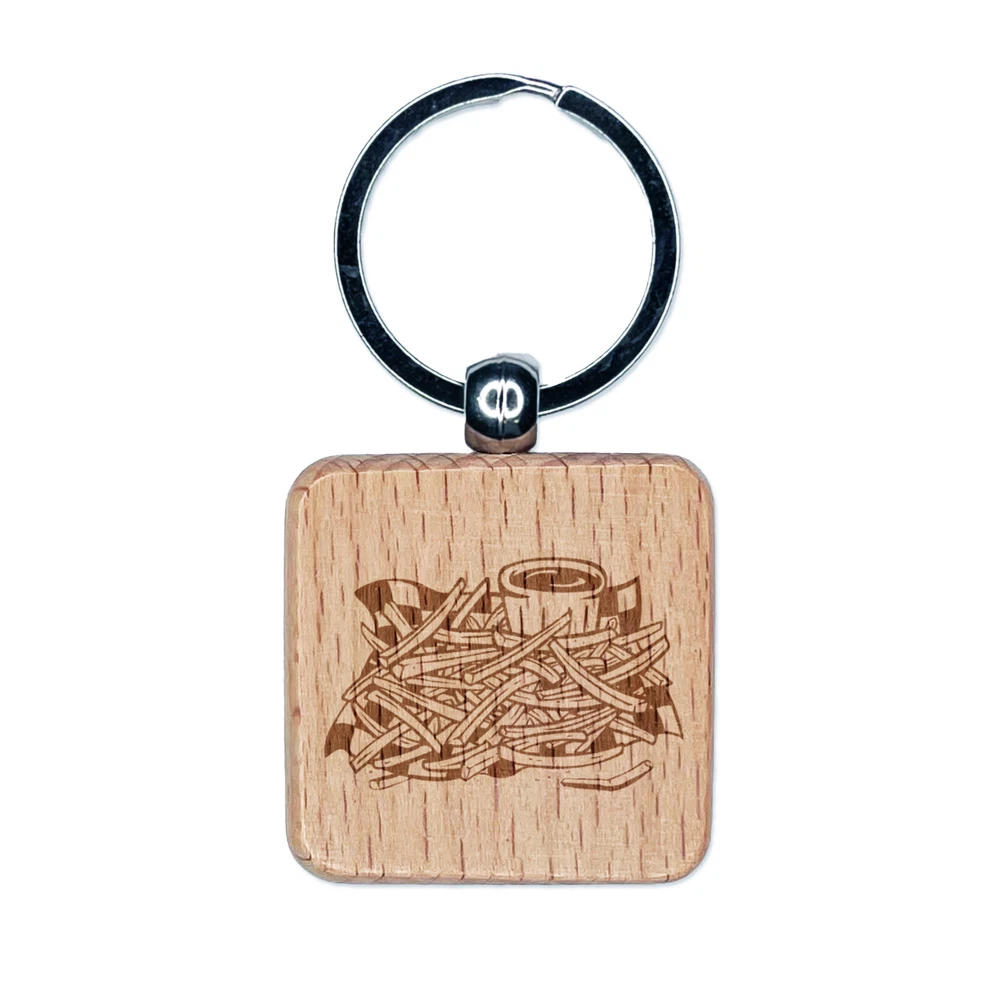 French Fries Potato Chips Pommes Frites Ketchup Engraved Wood Square Keychain