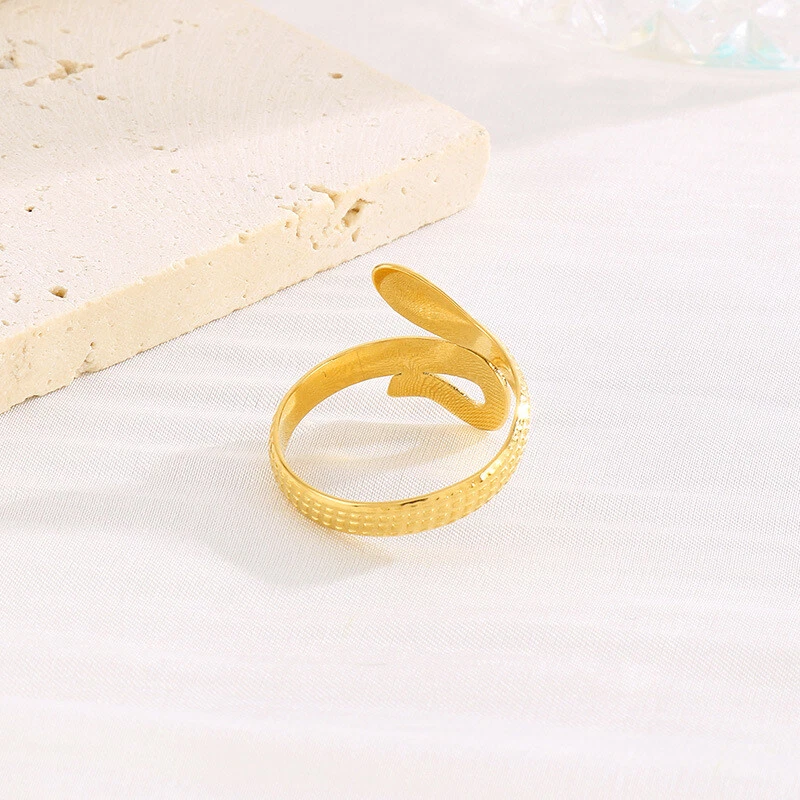 French new niche ring electroplated 18k gold titanium steel ring C open ring