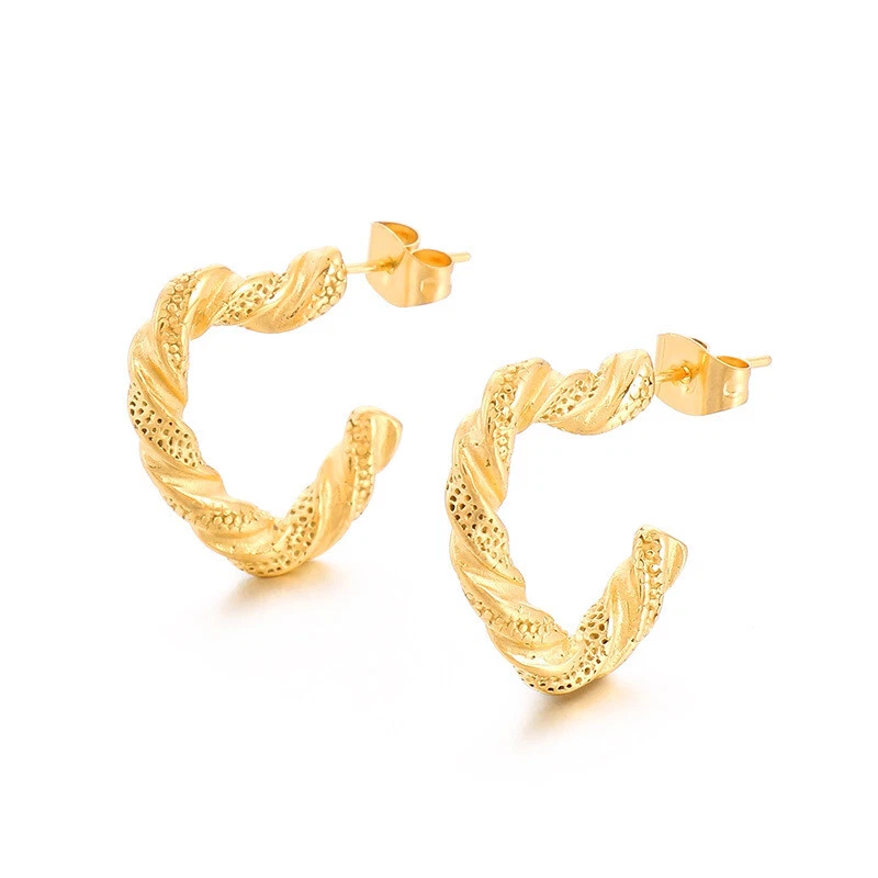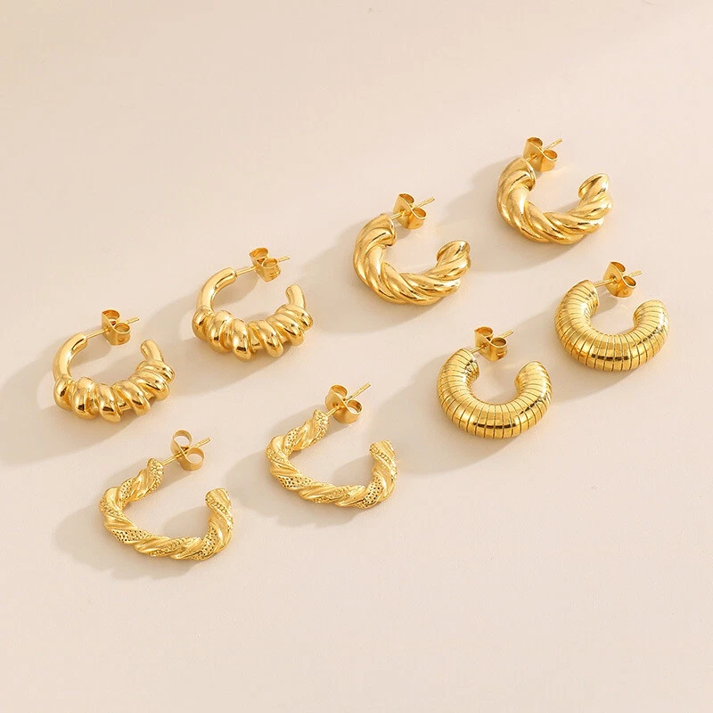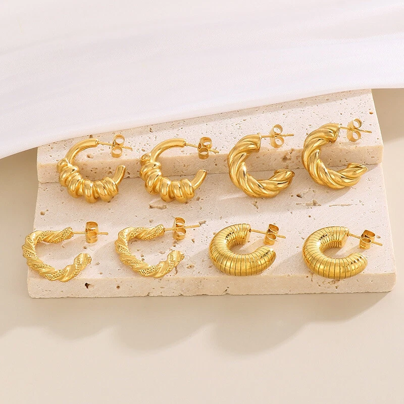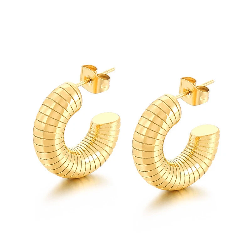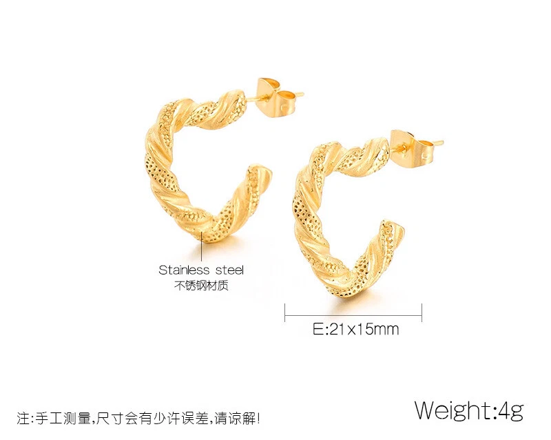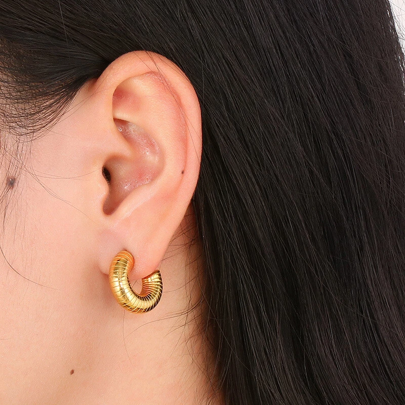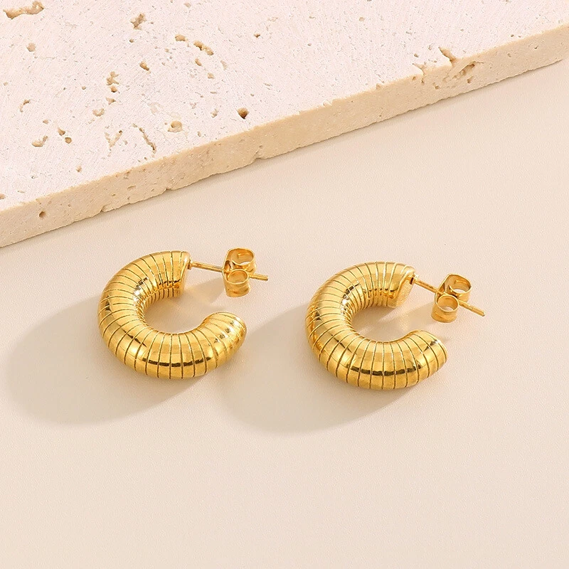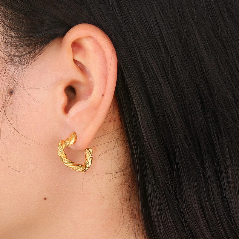 French style retro C-plaid titanium steel gold-plated round earring girl