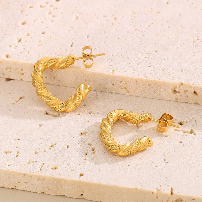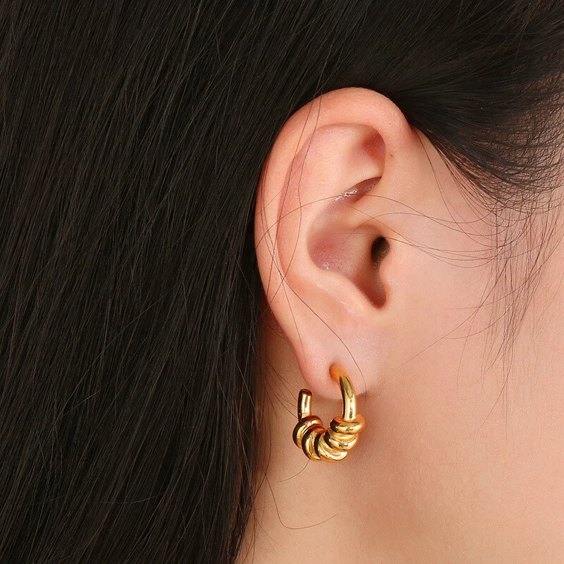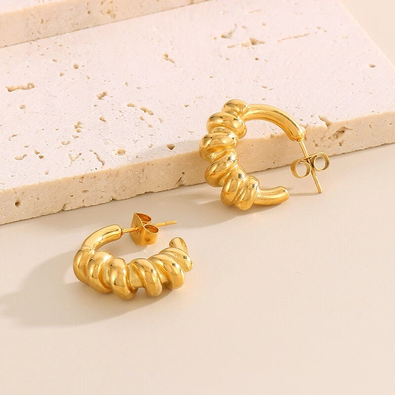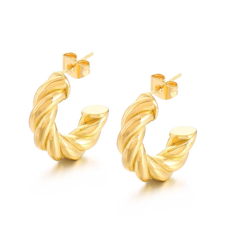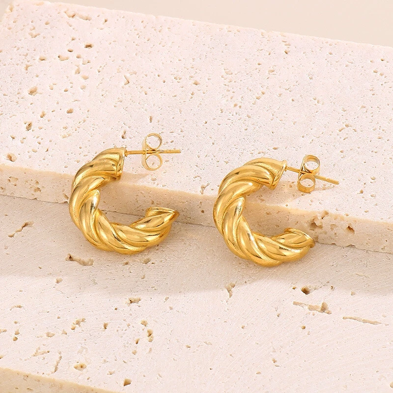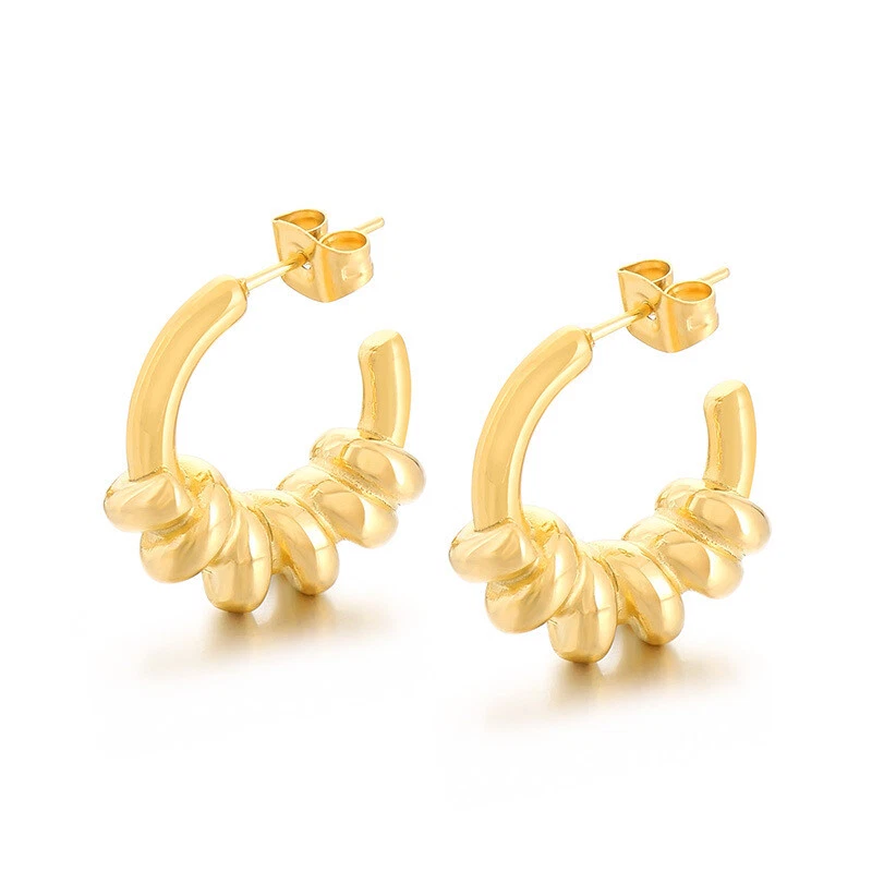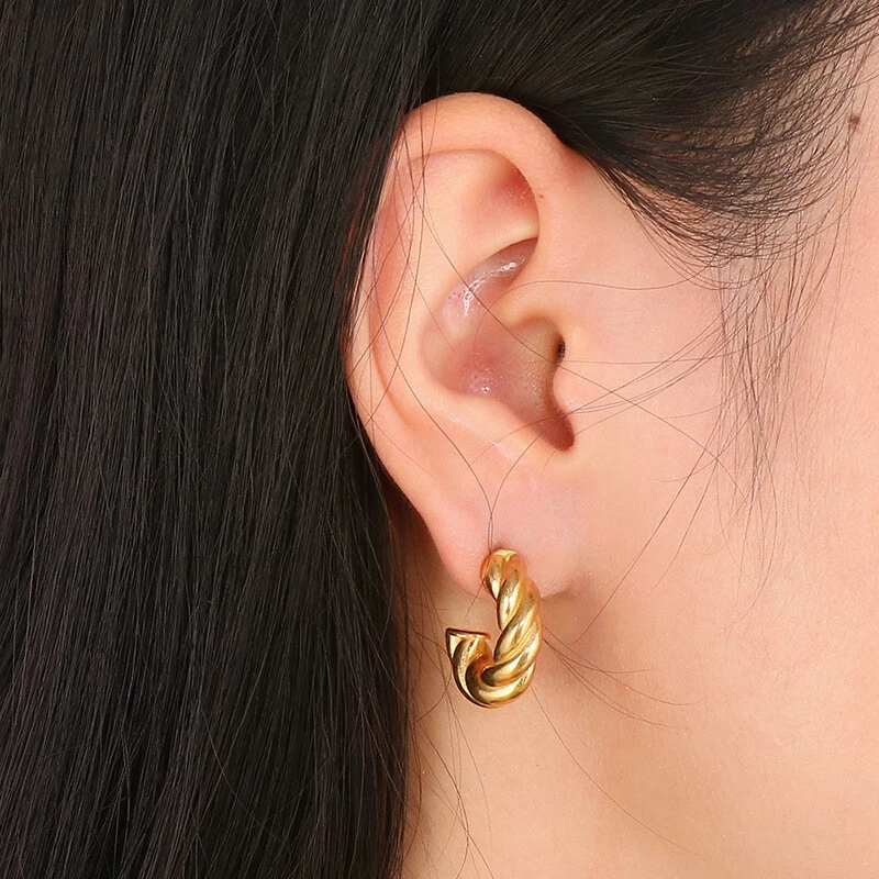 French style retro C-plaid titanium steel gold-plated round earring girl