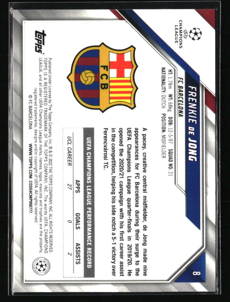 Frenkie de Jong 2021 Topps UEFA Champions League #8 Soccer Card