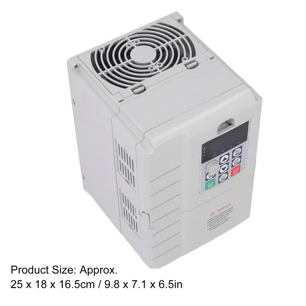 Feature: 1. INPUT AND OUTPUT: Universal frequency converter, single phase 220V input and 3 phase 380V output, suitable for 7.5KW (10) motor power, has good practicability. 2. HIGH PERFORMANCE: The motor inverter converter has high torsion, high accuracy and wide speed regulation drive, which is stable and in performance. 3. SAFE : The inverter adopts anti trip design, which has the ability to adapt to bad power grid, temperature and dust interference, and it is safe to operate. 4. GOOD STABILITY: Built in filter, and adopt V/F open loop control mode, with PWM control output voltage regulation mode, has good performance stability. 5. WIDE APPLICATION: Can be used to control the start and stop, speed regulation, CW and CCW of the motor, widely used in fans, pumps, air compressors, etc. Specification: Item Type: Frequency Converter Model: AT904-7.5KW Input Voltage: Single Phase 220VAC 50/60Hz Output Voltage: 3 Phase 0-380VAC 0-400Hz Maximum Output Current: 32A Suitable Motor Power: 7.5KW (10) Filter: Built in Filter Application: Universal DC Power Supply Property: Voltage Type Control Mode: V/F open loop Output Voltage Regulation Mode: PWM Control Appearance: ABS plastic shell Product Size: Approx. 25 x 18 x 16.5cm / 9.8 x 7.1 x 6.5in Uses: Control the start, stop, speed regulation and forward and reverse rotation of the motor to meet the conditions required for production or equipment use, widely used in fans, pumps, air compressors, etc. Package List: 1 x Frequency Converter 1 x User Manual Note: 1. Select a compatible motor to use, you must choose a 380V 3 phase motor with a power less than 7.5KW and adjustable speed. 2. According to the wiring method of the user manual, connect the power supply and the 3 phase motor. 3. Select the appropriate mode according to the needs of the application scenario, and refer to the manual for mode selection. 4. Power on, the speed of the motor and forward and reverse rotation can be adjusted according to the knob on the panel. 1. Our listing price includes the value of goods,packaging cost,and export taxes,not including international duties. 2. duties,taxes,and charges are not included in the item price or shipping fee. 3. T he duties are buyers' responsibility .Please check with your country's customs office determine what these additional costs will be prior to your purchase. 4. All disputes arising from the duties will be submitted to ebay for solution. 1. Any questions, pls. contact us via ebay message or email us. We will reply your message within 48 hours. If you do not receive our reply within 48 hours, pls. post a message again beuse sometimes our message system may block some emails. 2. If you are satisfied with our service, pls. kindly leave us a positive feedback and give us the Detailed Seller Rating with all " 5 " in every area 3. Our aim is to provide Level Customer Service, your recognition will encourage us greatly and serve you better. We strive to keep all our customers satisfy. We will do our up most to exceed your expectations in customer service, communition and dispatching of your orders. On Oct 13, 2024 at 21:26:24 PDT, seller added the following information: