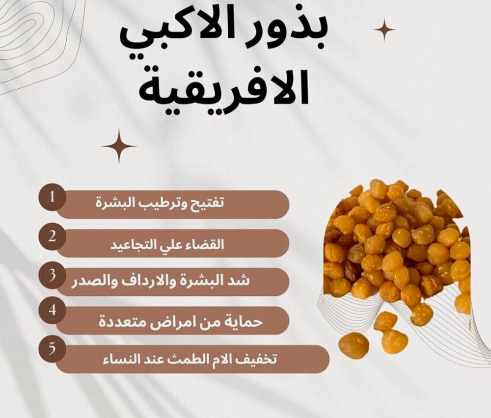 African Fresh Akpi Seeds - Natural Feminine Health & Curves | Djansang 50g Product Description (English): Discover the Power of African Akpi Seeds (Djansang) Experience the numerous benefits of Fresh African Akpi Seeds , also known as Djansang , in this convenient ---gram pack. These premium-quality seeds are renowned for their natural ability to support feminine health , promote skin care , and enhance culinary flavors . Trusted in African traditions for their versatility, Akpi seeds are a must-have for wellness and natural beauty enthusiasts. Key Benefits of Akpi Seeds: Feminine Health & Curves: Supports hormonal balance and helps naturally enhance curves, particularly in the hips, buttocks, and chest. Skin & Hair Care: Packed with antioxidants that promote glowing skin and strengthen hair. Culinary Value: Adds rich flavor to soups, stews, and sauces as a thickening agent and seasoning. Nutritional Boost: Rich in essential vitamins and minerals for overall wellness. How to Use: For Feminine Curves: Grind Akpi seeds into powder and mix with Vitamin E oil or shea butter. Apply to desired areas, massaging gently for better absorption. For Skin Care: Combine powdered Akpi seeds with honey or yogurt to create a nourishing face mask. For Culinary Uses: Crush the seeds and add them to soups, stews, or sauces to enhance flavor and texture. Package Size: - Perfect for personal use, whether for wellness routines or culinary creations. Storage Instructions: Store in a cool, dry place away from direct sunlight to preserve freshness and potency. Why Choose Our Akpi Seeds? Our Fresh African Akpi Seeds (Djansang) are sourced from trusted suppliers to ensure top quality and maximum effectiveness. Whether you're looking to support your health, enhance your natural beauty, or elevate your cooking, these seeds offer a versatile solution. African Akpi Seeds Fresh Djansang Seeds Natural Curves Enhancer Hormonal Balance Remedy Skin & Hair Care with Akpi African Culinary Superfood Akpi Seeds for Wellness Arabic Description: اكتشف فوائد بذور الأكبي الأفريقية (ديجانسانج) استمتع بفوائد بذور الأكبي الطازجة ، المعروفة أيضًا باسم ديجانسانج ، مع عبوة مريحة. تشتهر هذه البذور عالية الجودة بقدرتها الطبيعية على دعم صحة المرأة ، تعزيز جمال البشرة ، وتحسين نكهات الطهي . الفوائد الرئيسية لبذور الأكبي : صحة المرأة وتعزيز المنحنيات : تدعم توازن الهرمونات وتساعد بشكل طبيعي على تحسين شكل الأرداف والصدر . العناية بالبشرة والشعر : غنية بمضادات الأكسدة التي تعزز بشرة متألقة وشعر قوي . القيمة الغذائية : تضيف نكهة غنية للشوربات واليخنات والصلصات كمثخن ومنكه طبيعي . تعزيز الصحة العامة : غنية بالفيتامينات والمعادن الأساسية . طريقة الاستخدام : لتعزيز المنحنيات : اطحني البذور إلى مسحوق وامزجيها مع زيت فيتامين E أو زبدة الشيا. ضعيها على المناطق المرغوبة مع التدليك بلطف . للعناية بالبشرة : امزجي مسحوق بذور الأكبي مع العسل أو الزبادي للحصول على قناع وجه مغذي . لأغراض الطهي : اطحني البذور وأضيفيها للشوربات واليخنات لتحسين النكهة والقوام . حجم العبوة : مثالي للاستخدام الشخصي، سواء للعناية بالصحة أو الجمال أو لتحضير الأطباق . تعليمات التخزين : يُحفظ في مكان بارد وجاف بعيدًا عن أشعة الشمس المباشرة للحفاظ على النضارة والفعالية . لماذا تختار بذور الأكبي الخاصة بنا؟ تم اختيار بذور الأكبي الطازجة (ديجانسانج) بعناية لضمان الجودة الممتازة والفعالية القصوى. سواء كنت تبحثين عن دعم صحتك، تعزيز جمالك الطبيعي، أو تحسين أطباقك، تقدم هذه البذور حلاً متعدد الاستخدامات . French Description: Découvrez les Bienfaits des Graines d’Akpi Africaines (Djansang) Profitez des bienfaits des graines d’Akpi fraîches , également connues sous le nom de Djansang , avec ce paquet pratique de --grammes. Ces graines de haute qualité sont reconnues pour leurs capacités naturelles à soutenir la santé féminine , améliorer la peau , et enrichir les saveurs culinaires. Avantages Clés des Graines d’Akpi : Santé Féminine et Courbes : Favorise l’équilibre hormonal et aide à améliorer les courbes naturelles des hanches, fesses, et poitrine. Soin de la Peau et des Cheveux : Riche en antioxydants, elle favorise une peau éclatante et une croissance saine des cheveux. Valeur Culinaire : Ajoute une saveur riche aux soupes, ragoûts et sauces en tant qu’épaississant et assaisonnement. Boost Nutritionnel : Riche en vitamines et minéraux essentiels pour le bien-être général. Comment Utiliser : Pour les Courbes Féminines : Réduisez les graines en poudre et mélangez-les avec de l’huile de vitamine E ou du beurre de karité. Appliquez en massant doucement. Pour le Soin de la Peau : Mélangez les graines d’Akpi en poudre avec du miel ou du yaourt pour un masque nourrissant. Pour la Cuisine : Écrasez les graines et ajoutez-les aux soupes, ragoûts ou sauces pour plus de saveur et de texture. Taille du Paquet : Idéal pour un usage personnel, qu’il s’agisse de routines bien-être ou de créations culinaires. Instructions de Conservation : Conservez dans un endroit frais et sec, à l’abri de la lumièr