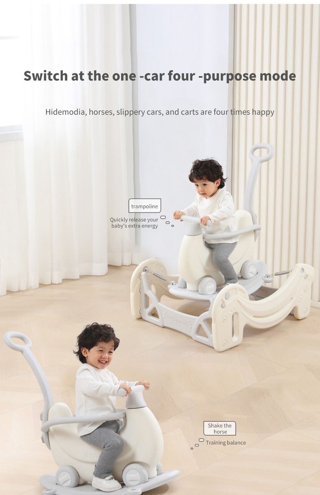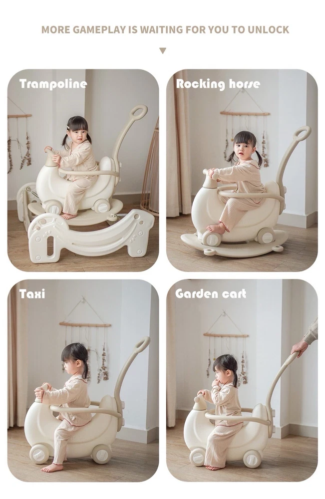 Product information Name: Banana Spring car Brand: babysoul Material: Environmental protection HDPE Size: 87*31*48 cm Color: Mocha-white / Gray-white Age: 1-6 years old