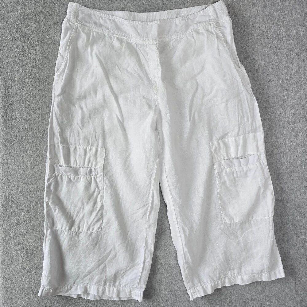 Fresh Produce Casual 100% White Linen Capri/Cropped Ankle Wide Leg Pants Pull-on elastic waist with Pockets. These pants are great for a resort, walk on the beach or boardwalk. Gently used, No visible stains or holes (See Pictures) Size: Extra Large Measurements: Waist 15 1/4" Length:32 1/2" Inseam: 20 1/2" Leg Opening: 11 1/2" Thanks for visiting!
