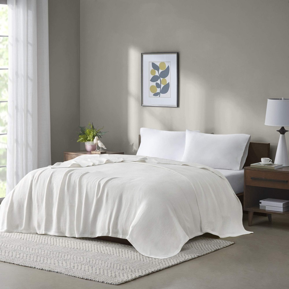The cotton blanket is OEKO-TEX certified, meaning it does not contain any harmful substances or chemicals to ensure quality comfort and wellness. The Freshspun blanket features a classic basket weave pattern. Made from high quality first pick upland cotton, this lightweight blanket is perfect for year round use. 100% cotton basketweave 100% cotton, 250gsm 1 Blanket:108x90" MACHINE WASH COLD, GENTLE CYCLE, AND SEPARATELY. DO NOT BLEACH. TUMBLE DRY LOW, REMOVE PROMPTLY. IRON WITH WARM TEMPERATURE. IF THERE IS NO FREE MOVEMENT IN THE WASHER OR DRYER, USE LARGE CAPACITY COMMERCIAL WASHER/DRYER.